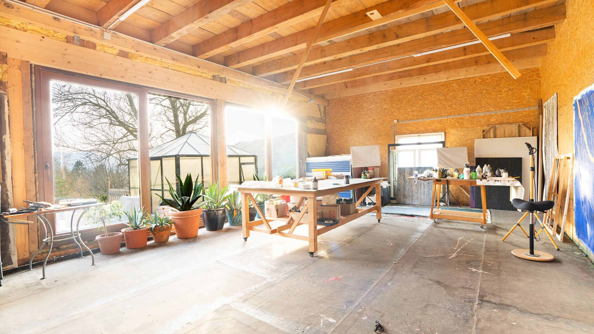 Für kreative oder berufliche Nutzung steht eine Werkstatt sowie ein separates Atelier zur Verfügung. Diese bieten ausreichend Raum für individuelle Projekte. Im oberen Bereich des Ateliers befindet sich eine zusätzliche Fläche mit Ausbaupotenzial, für die bereits eine entsprechende Bewilligung vorliegt.