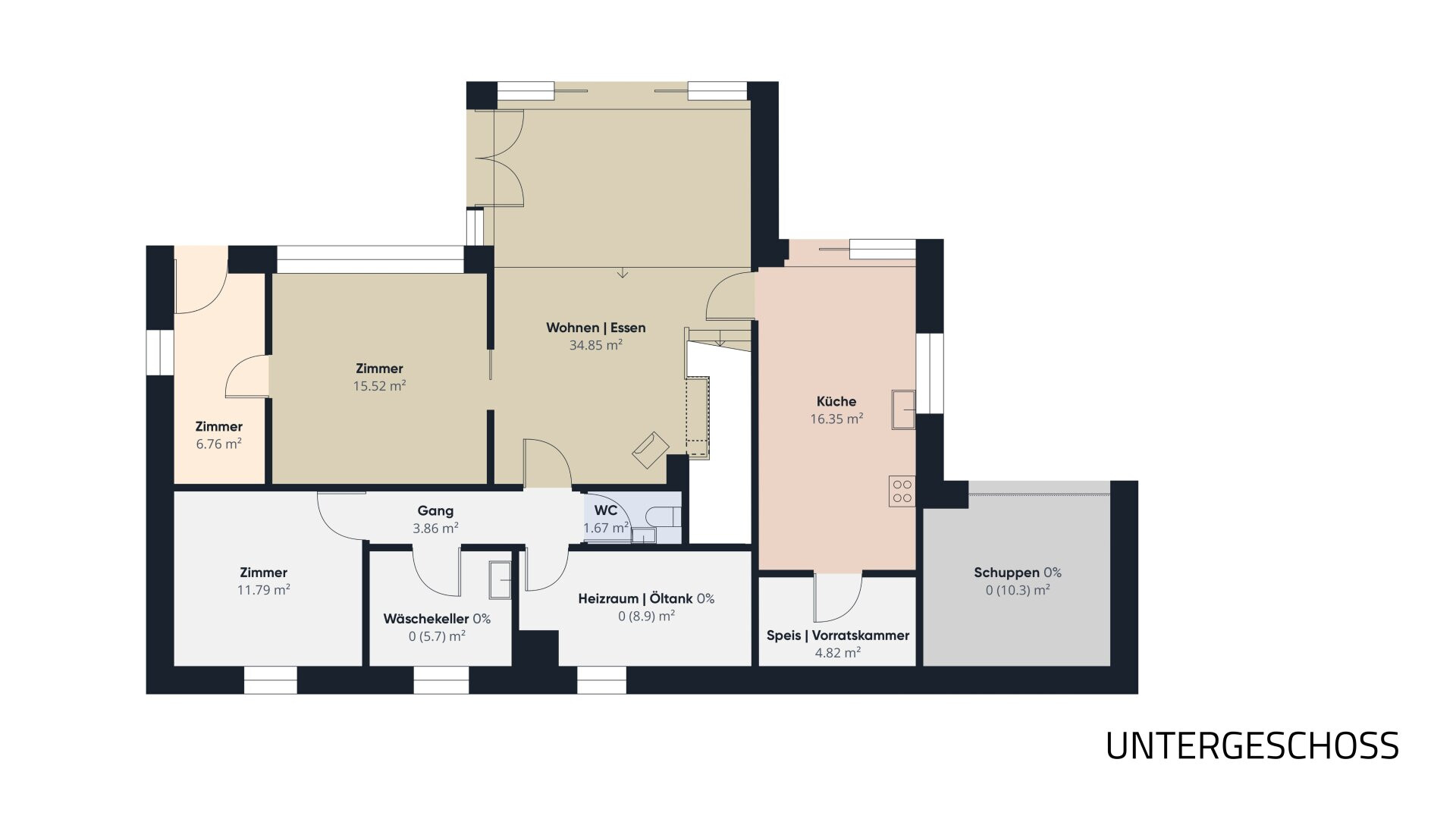 Alle Räume im Untergeschoss sind tageslichtbelichtet, was das Haus auch für größere Familien oder für Arbeiten von zu Hause attraktiv macht.