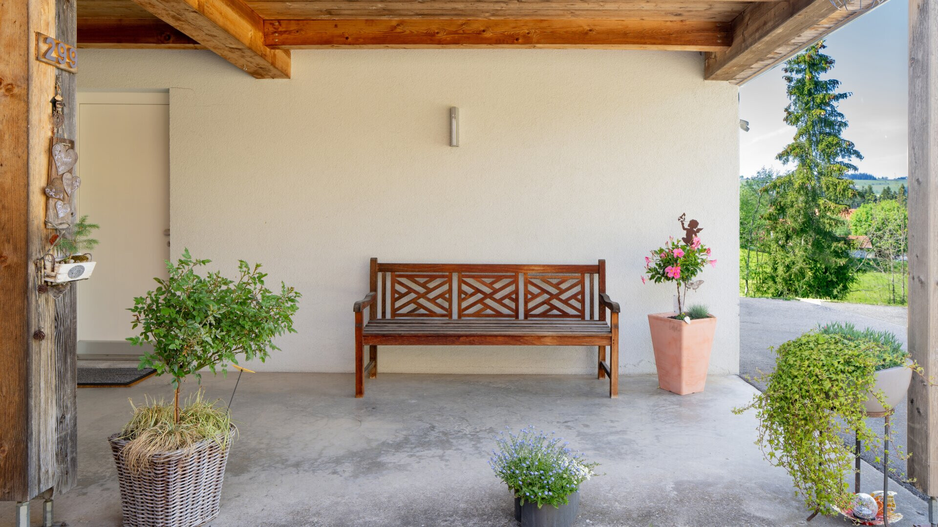 Zur Liegenschaft gehören zudem ein Carport mit zwei Stellplätzen, eine Garage mit zwei Stellplätzen, zwei Schuppen und ein gepflegter Garten. Der großzügig angelegte Garten ist mit einem Birnenbaum, einer Zierkastanie, einem Blutahorn sowie mehreren Fliedersträuchern bepflanzt und schafft eine angenehme, naturnahe Atmosphäre. Die Bepflanzung bietet zu jeder Jahreszeit reizvolle Akzente und unterstreicht den privaten Charakter der Liegenschaft. Das Flachdach über Garage und Carport wurde 2024 komplett erneuert.