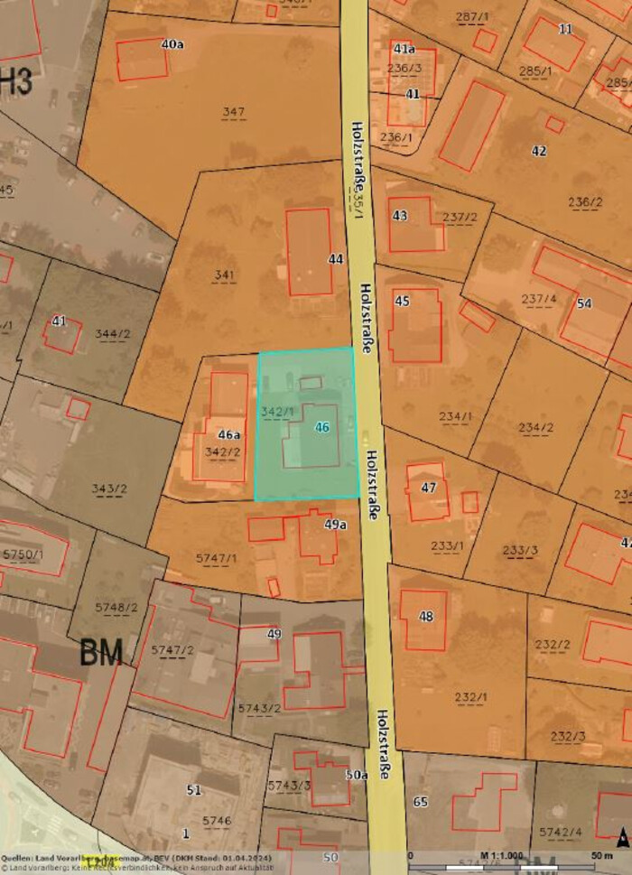 Die Grenze zu der Schweiz erreichen Sie in Kürze, wie auch die Bushaltestellen "Gasthaus Engel" sowie "Holzstraße".
