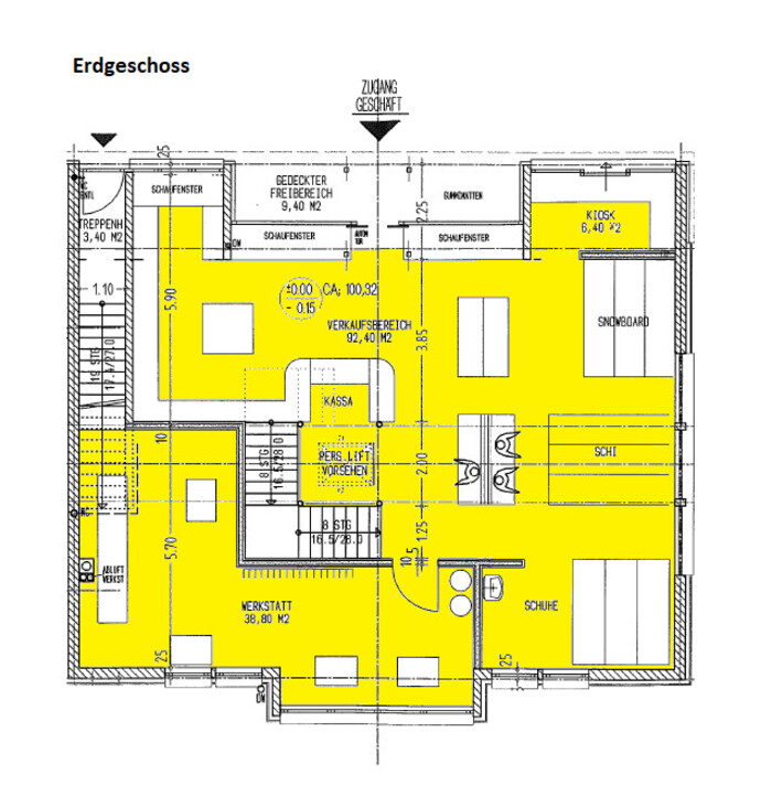 Erdgeschoss (ca. 154,42 m²): aktuell an den beliebten Ski- und Rodelverleih Laterns vermietet – laufende Mieteinnahmen inklusive