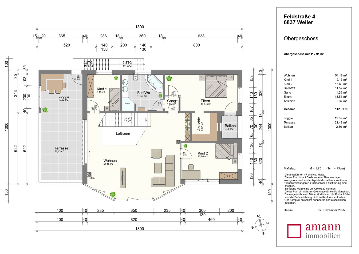 Zusätzlich gibt es eine nach Südwesten ausgerichtete Terrasse mit 21 m².