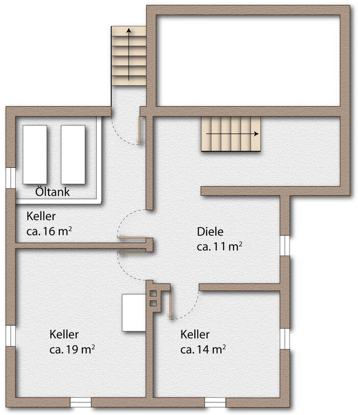 Das Haus ist vollständig unterkellert und bietet somit neben großzügigen Abstellmöglichkeiten auch Platz für einen Technikraum, eine Waschküche und einen Werkraum – ideal für Heimwerker oder Hobbybastler. Die dazugehörige Garage ermöglicht Ihnen trockenes und sicheres Parken direkt am Haus.