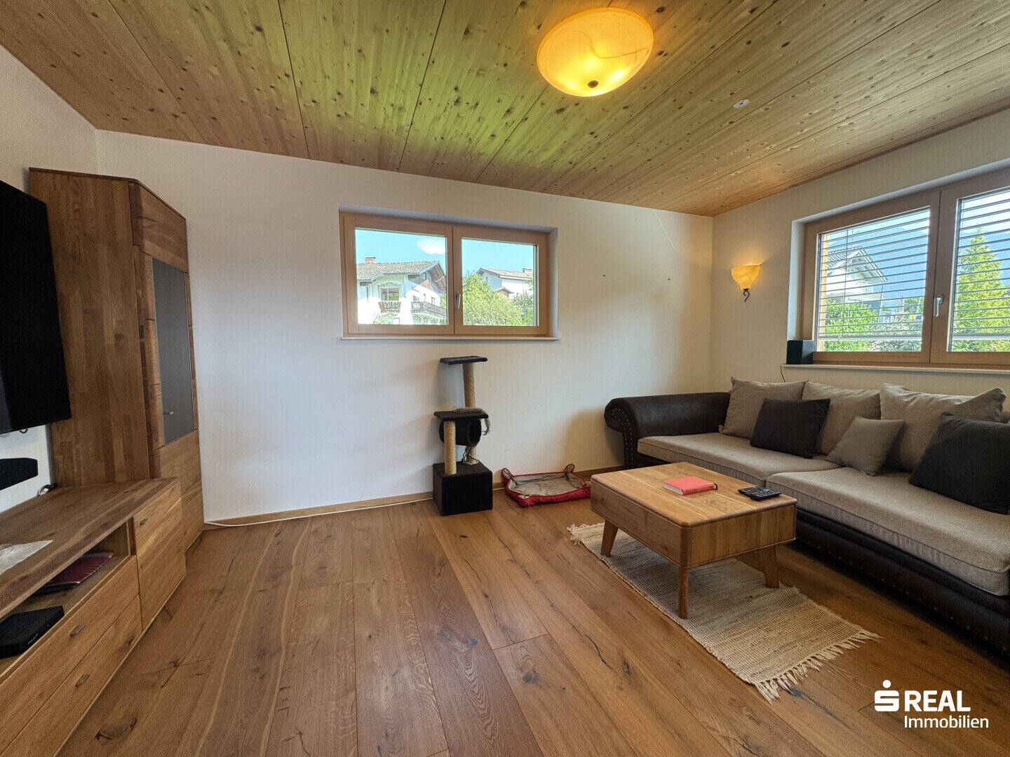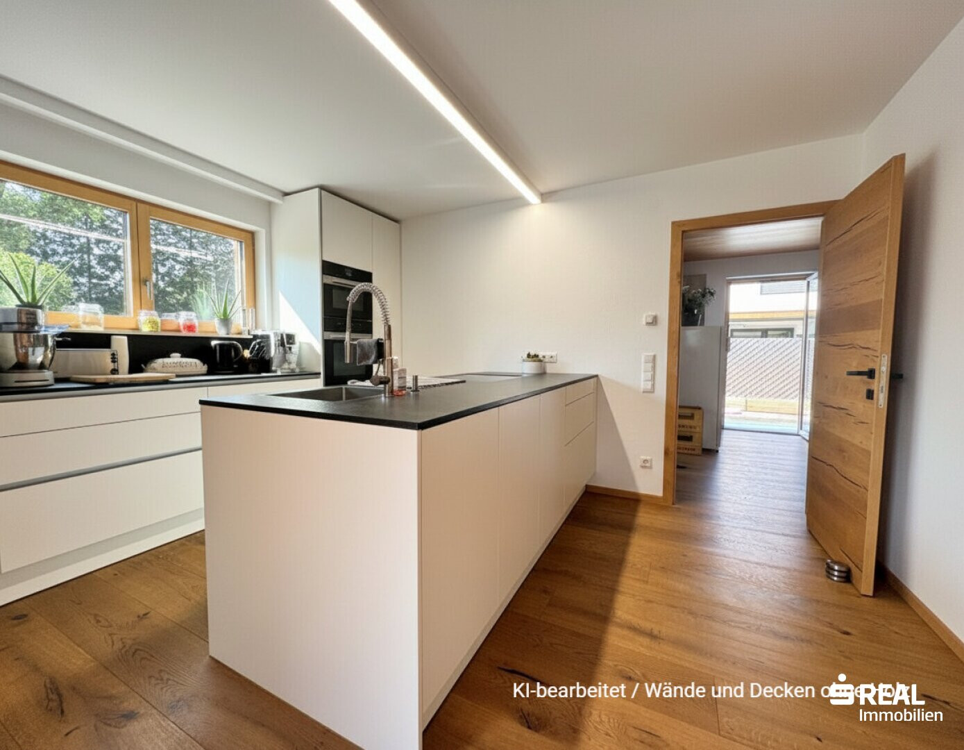 Das Haus selbst bietet Ihnen großzügige Räumlichkeiten, die viel Platz für persönliche Gestaltung und individuelle Wohnideen. Die lichtdurchfluteten Räume schaffen eine einladende Atmosphäre, in der Sie sich sofort wohlfühlen werden. Ob Sie gerne kochen, entspannen oder Gäste empfangen – hier finden Sie den idealen Rahmen für all Ihre Aktivitäten. Geheizt wird das tolle Haus mit einer Luftwärmepumpe in Kombination mit einer Photovoltaik-Anlage.