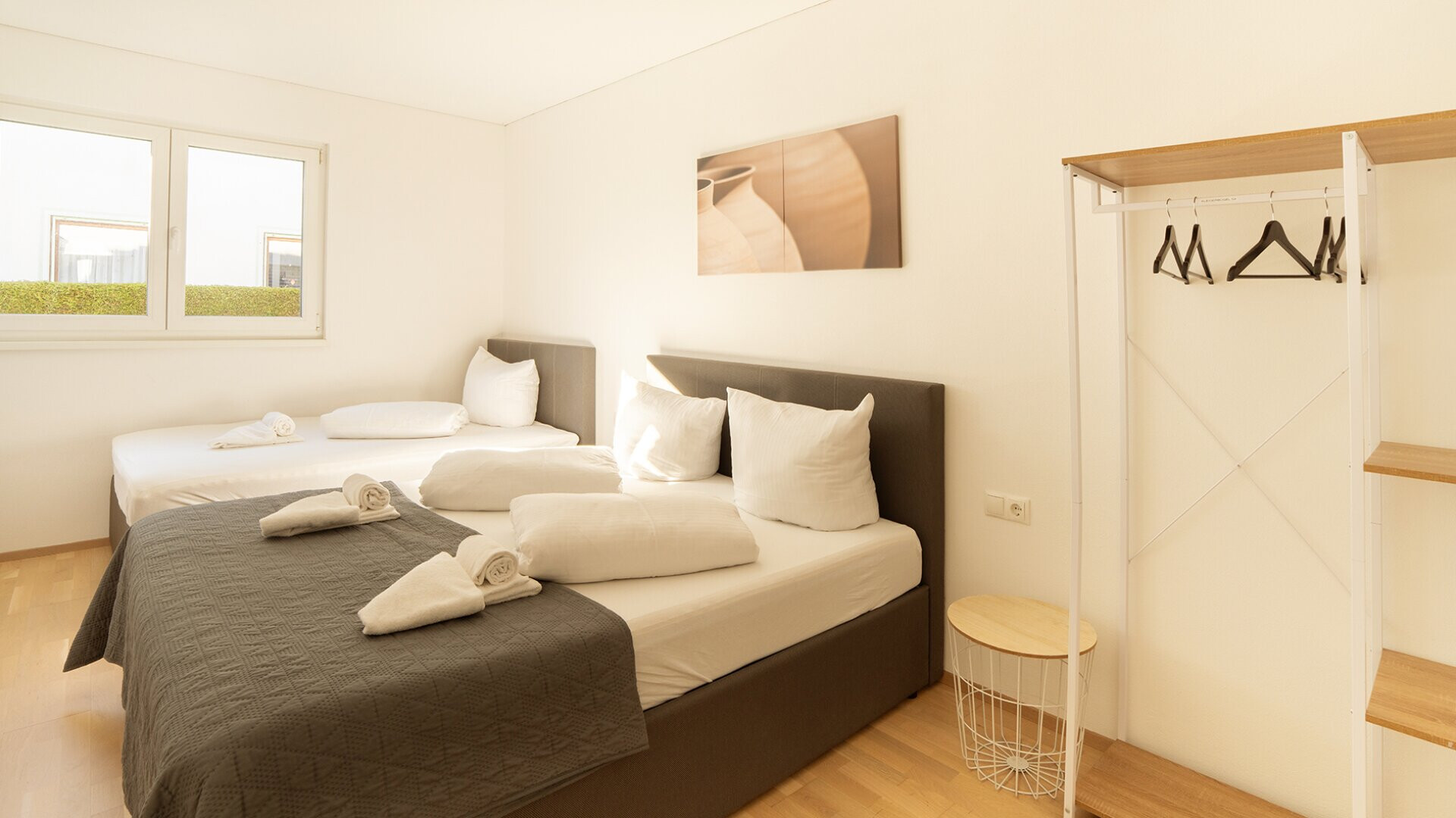 Die Penthousewohnung im Haupthaus ist völlig unabhängig vom Zubau. Durch die Anordnung der hinteren zwei Wohnungen bestehen keinerlei Überschneidungen oder Störungen im Alltag. Jede Einheit verfügt über einen eigenen Zugang, eigene Außenflächen und eigene Technik, somit ist die Nutzung für alle Parteien klar getrennt und angenehm gestaltet.