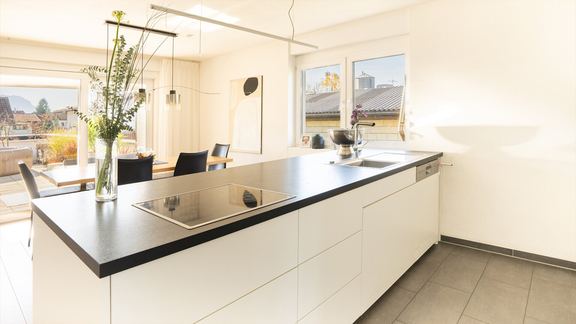 Die Penthousewohnung im Haupthaus ist völlig unabhängig vom Zubau. Durch die Anordnung der hinteren zwei Wohnungen bestehen keinerlei Überschneidungen oder Störungen im Alltag. Jede Einheit verfügt über einen eigenen Zugang, eigene Außenflächen und eigene Technik, somit ist die Nutzung für alle Parteien klar getrennt und angenehm gestaltet.