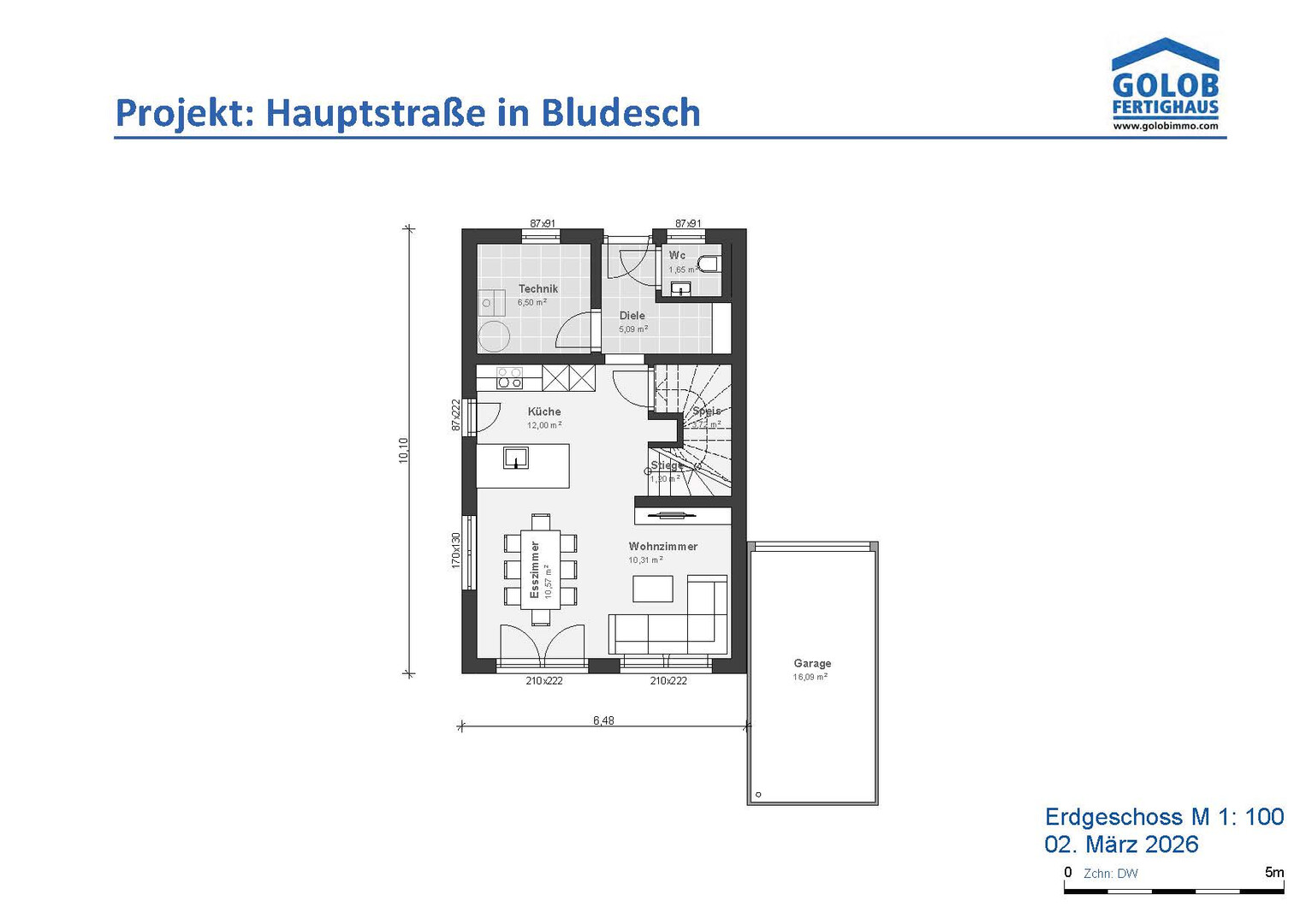 - Einzelgarage ca. 3 x 6 m mit Sektionaltor, elektr. Torantrieb, E-Installationen