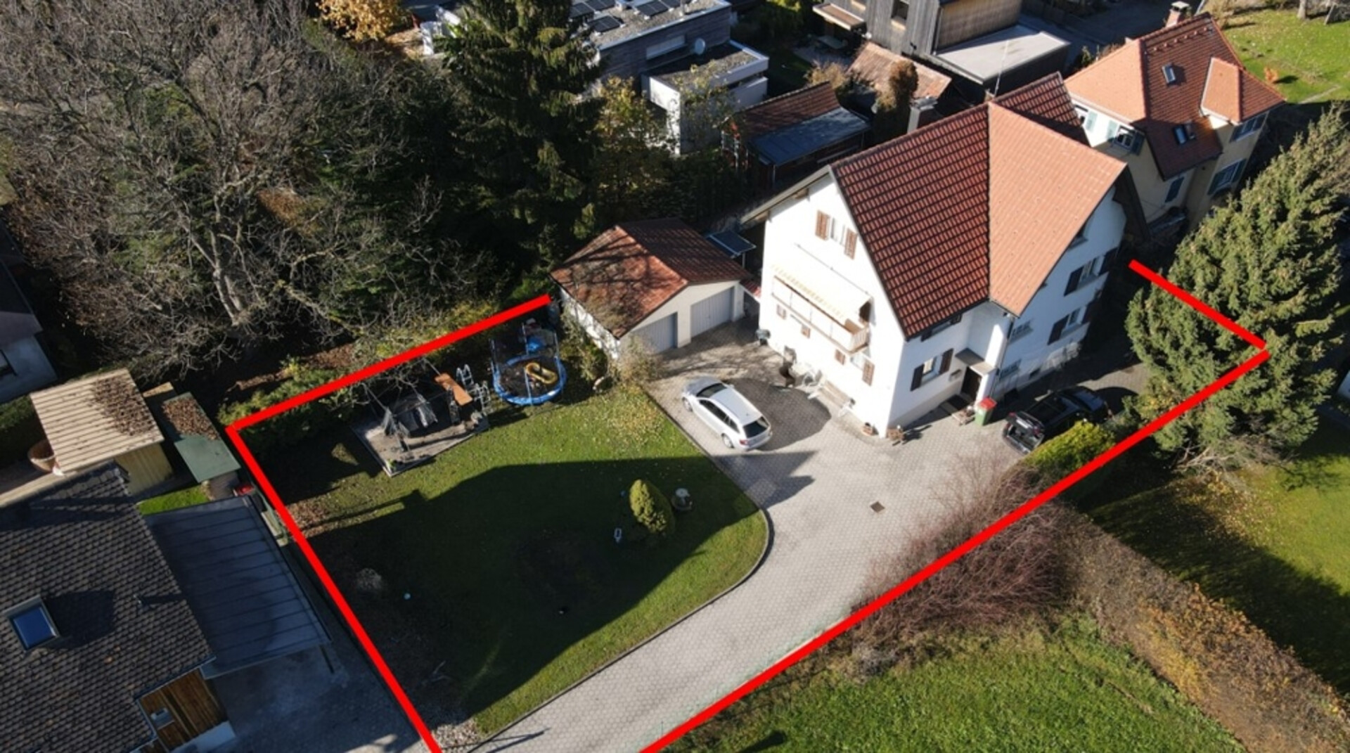 Das Haus befindet sich auf einem 745 m² großen Grundstück in einer verkehrsarmen Sackgasse und verfügt über eine Doppelgarage. Die Positionierung des Bestandsgebäudes wurde damals besonders gelungen gewählt, sodass sich auf dem Grundstück grundsätzlich auch die Errichtung eines weiteren Gebäudes prüfen ließe.