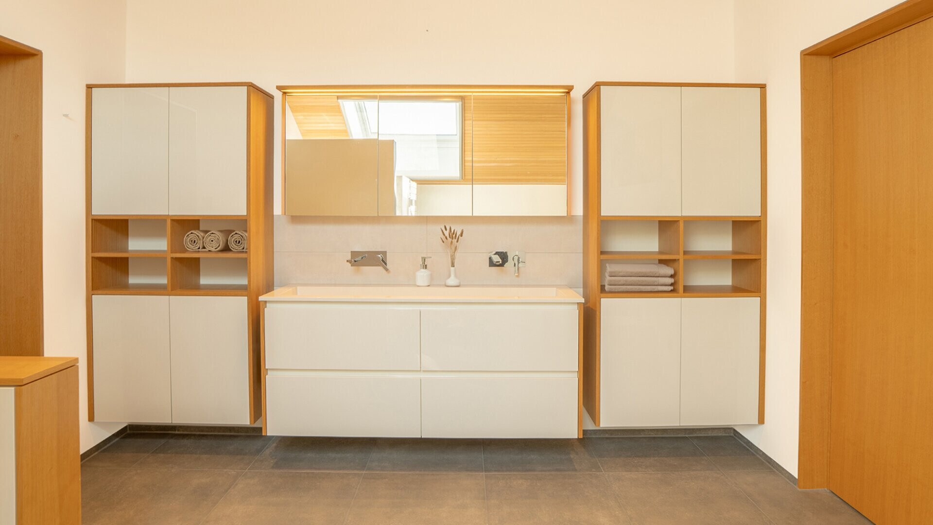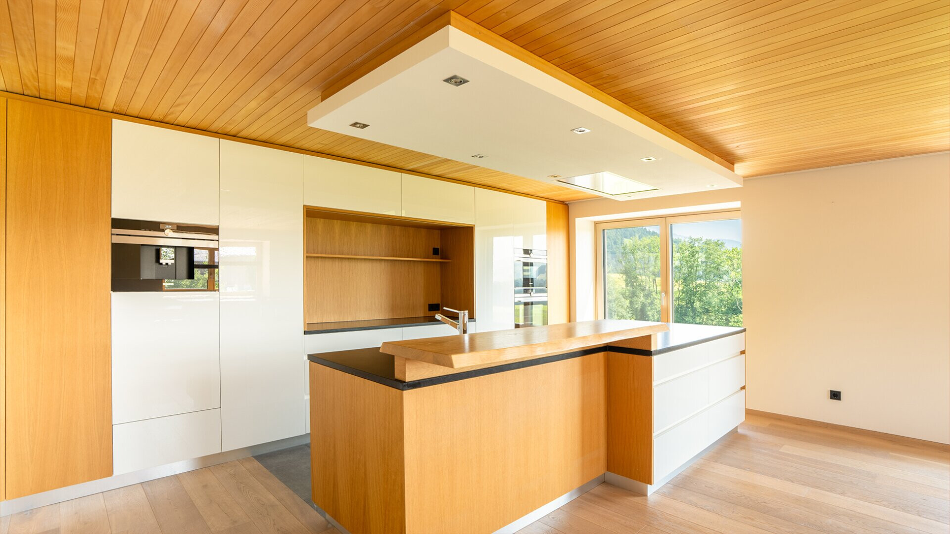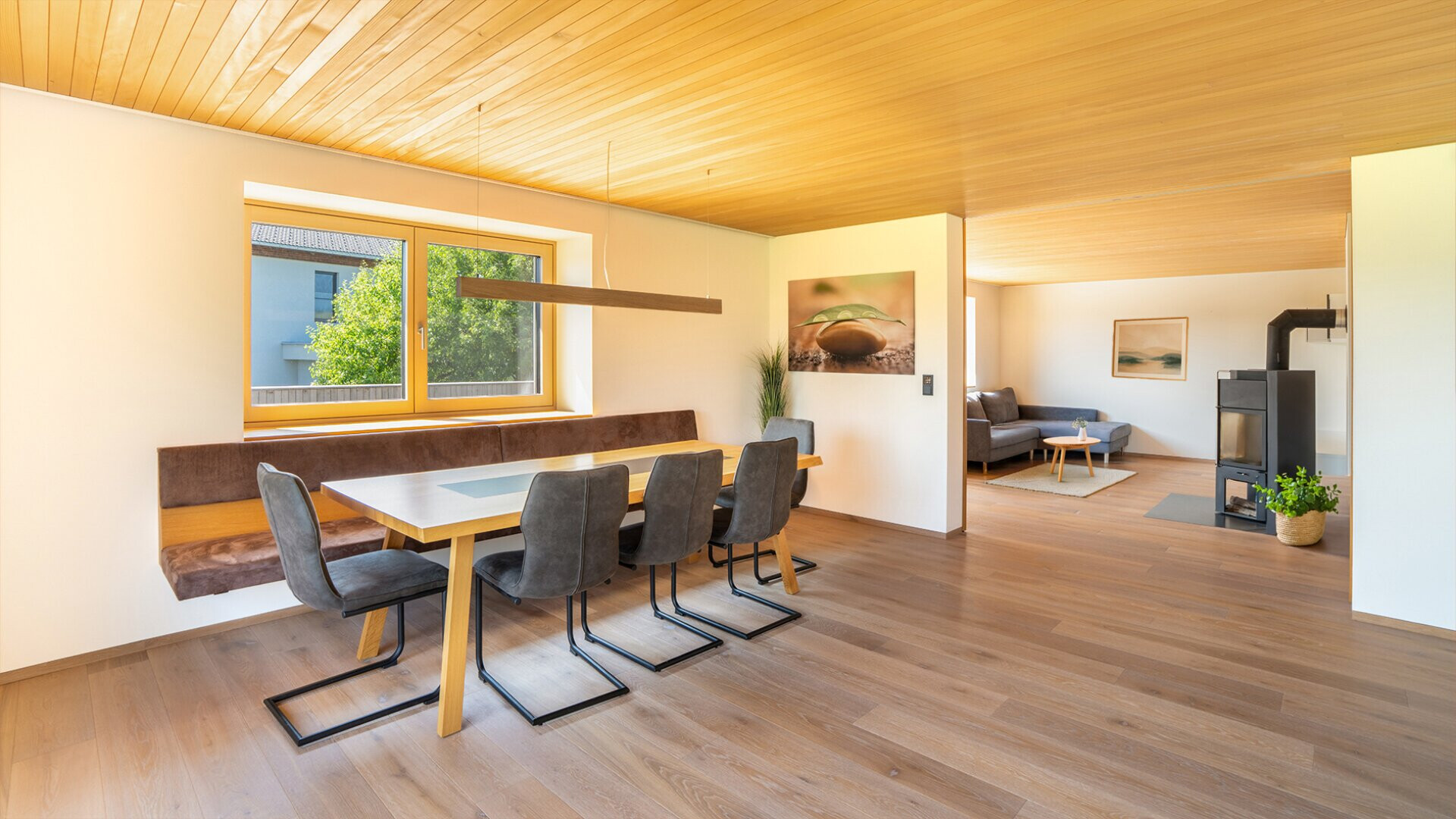 Das 2017 grundsanierte Haus verbindet hochwertige Handwerkskunst mit moderner Technik und wohnlichem Komfort. Bei der Inneneinrichtung wurde viel Wert auf Details und einen durchgängige Planung gelegt. Sämtliche Möbel sowie Einbauten sind Tischlermöbel. Die Kombination aus geöltem Eichenboden (angeräuchert, weißlich) und Weißtanne-Täfer schafft ein stimmiges Raumgefühl.