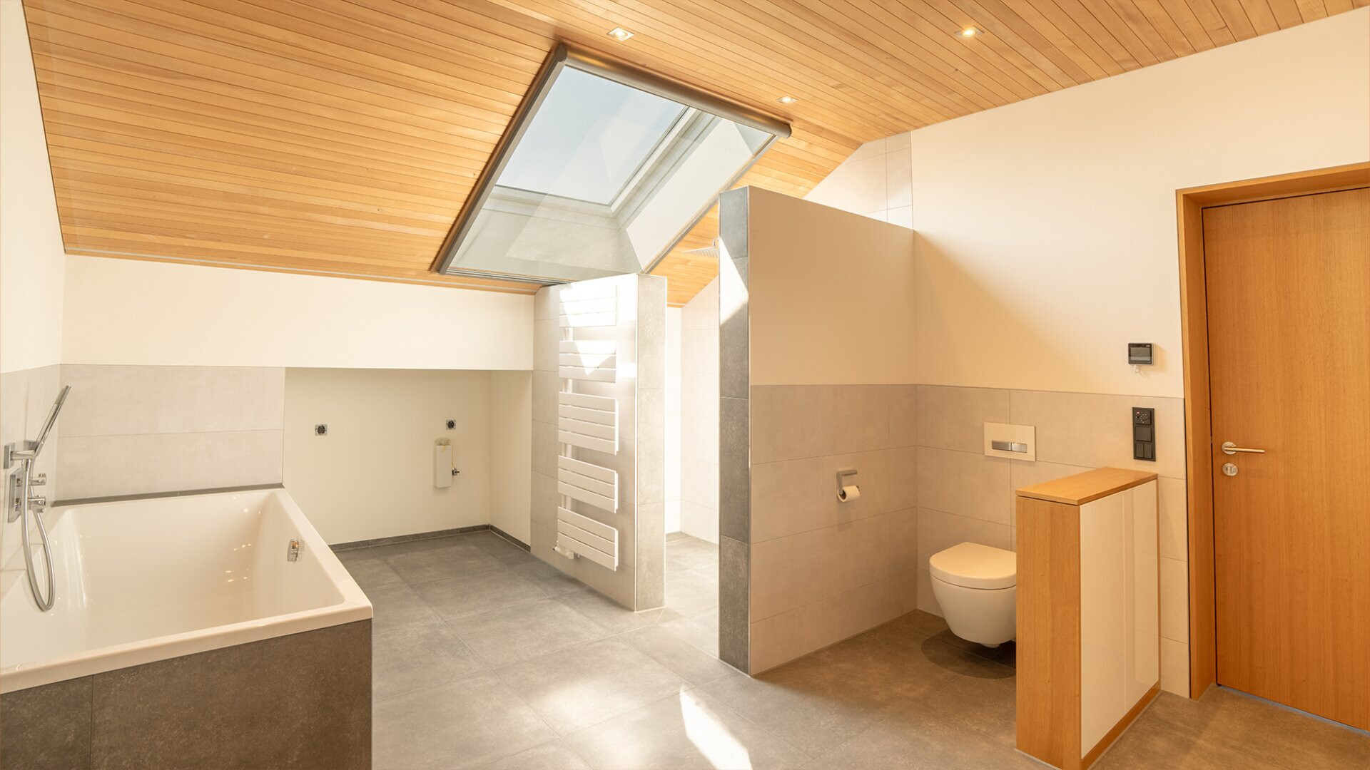 Die Bauweise ist massiv mit hohem Dämmstandard, dokumentiert durch den Energieausweis. Die Beheizung erfolgt über eine Luftwärmepumpe in Kombination mit Fußbodenheizung. Unterstützt wird das System durch eine 5 kW Photovoltaikanlage. Der jährliche Energieaufwand für Heizung und Warmwasser beträgt ca. 600 €.