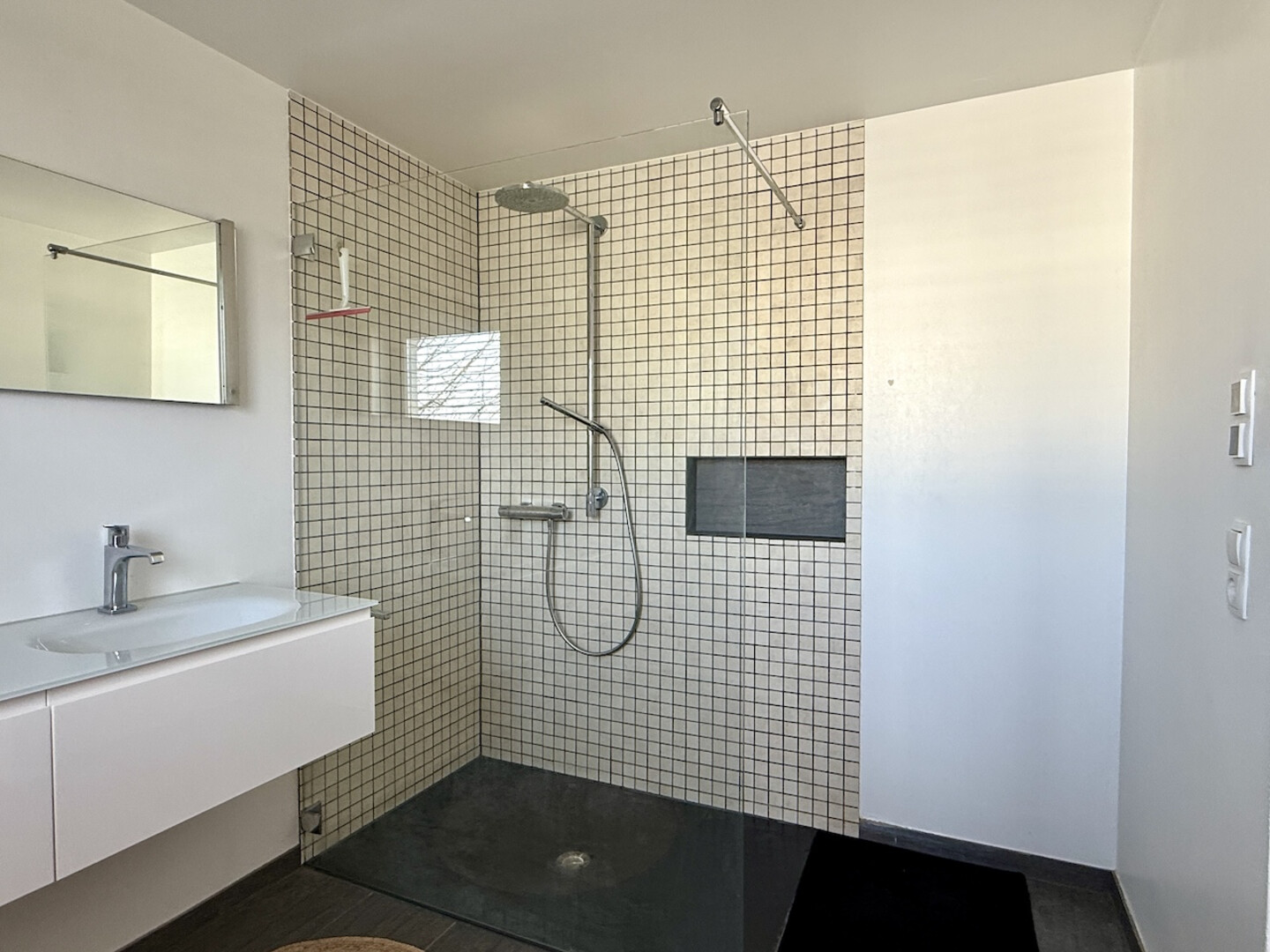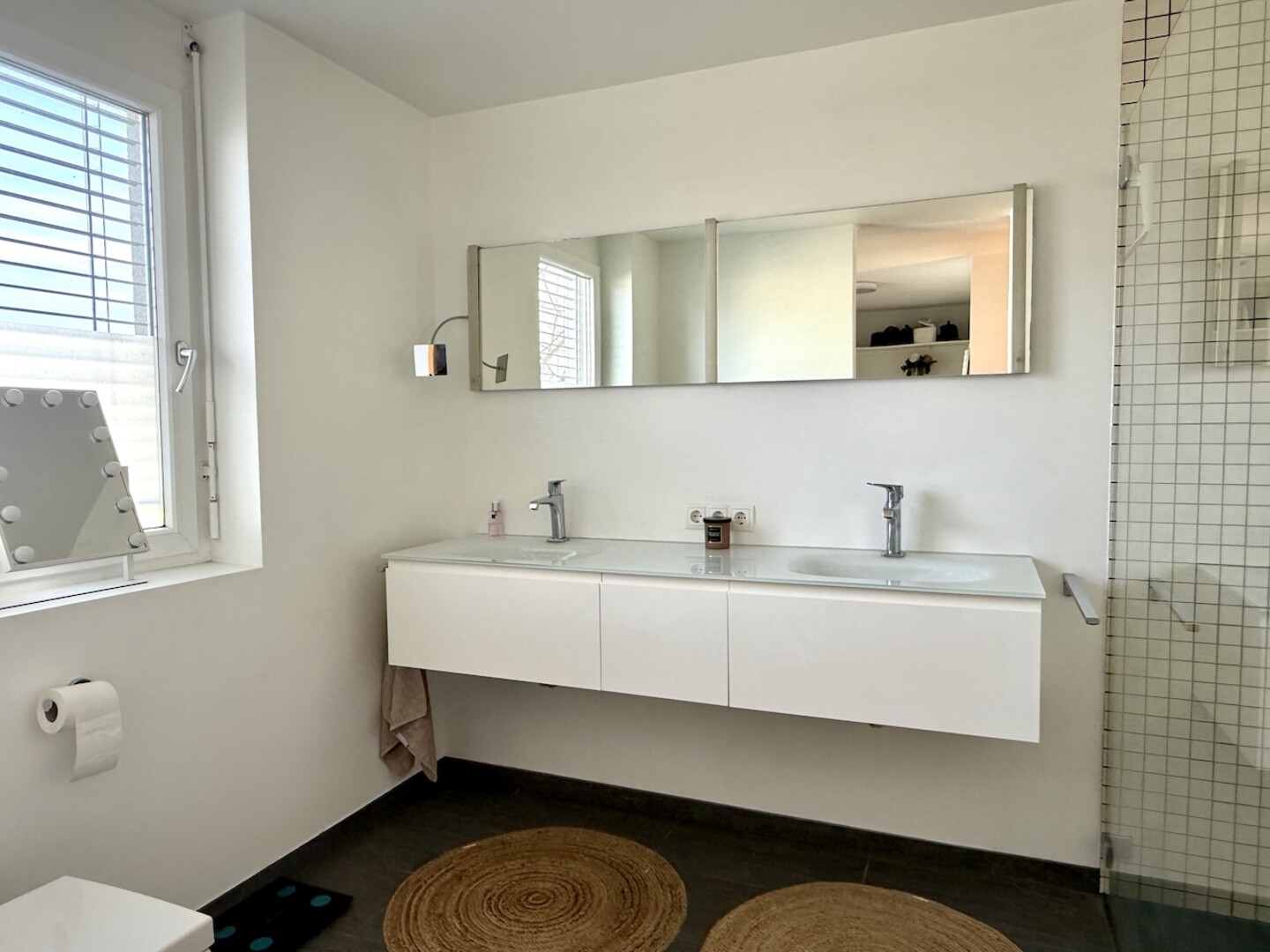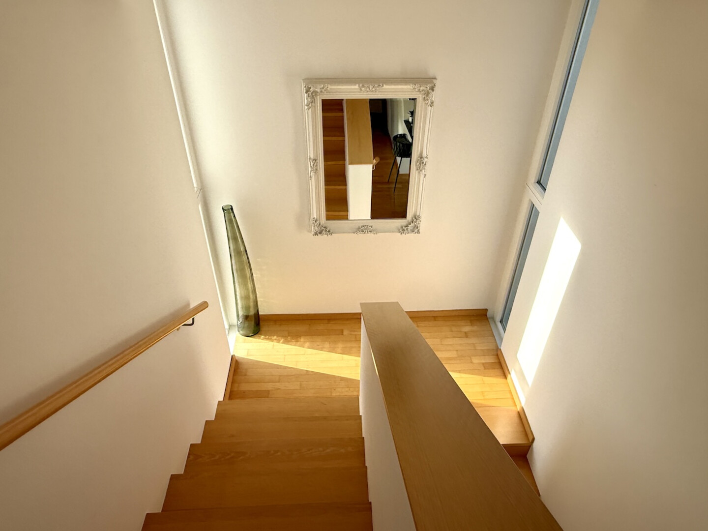 Über das helle Stiegenhaus mit schöner Vollholztreppe gelangen Sie in das Obergeschoss mit 4 Schlafzimmern. Ankleidezimmer/Arbeitszimmer mit direktem Zugang in das edle und hochwertig ausgestattete Badezimmer mit Dusche, WC und Fenster sowie 3 weitere Schlafzimmer.