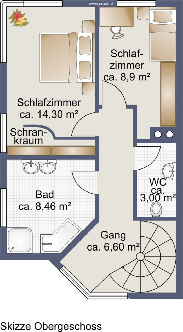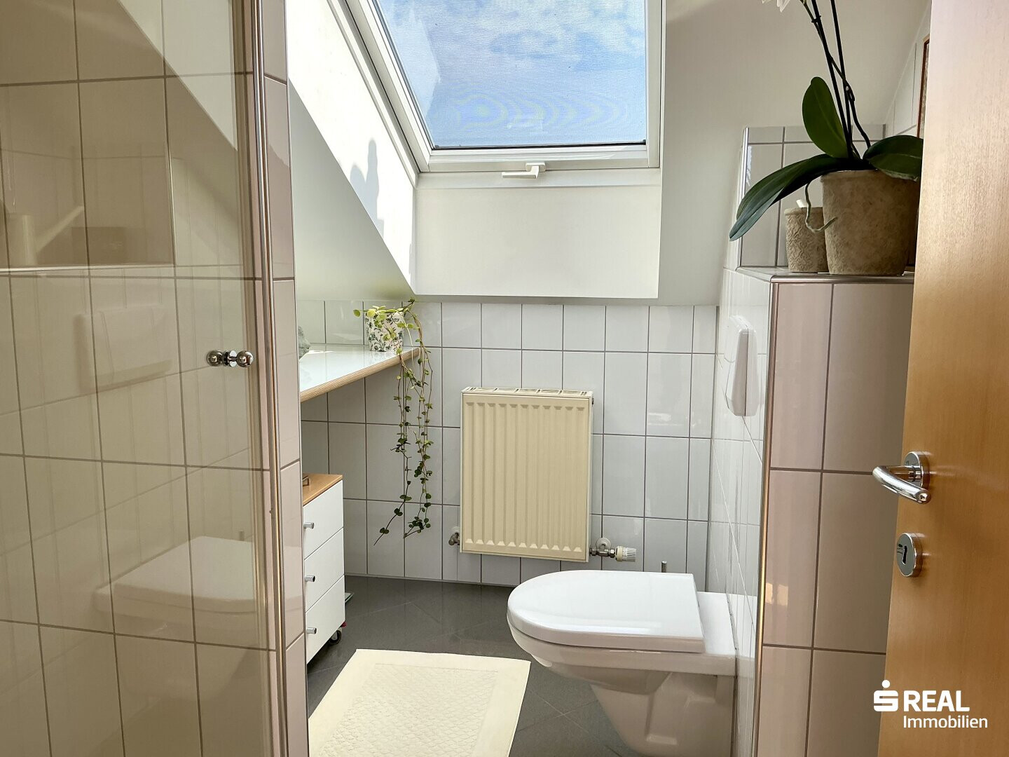 - Dachgeschoss: begehbare Einbauschränke, Bad-WC, Dusche, Dachfenster;