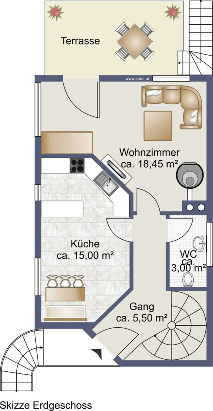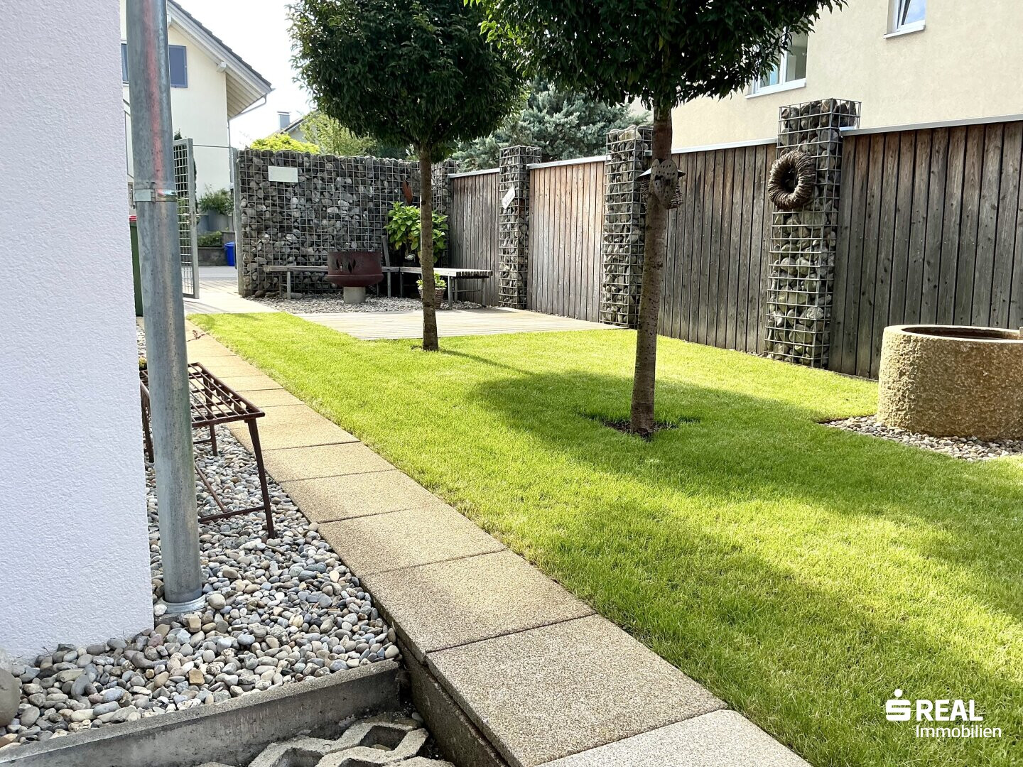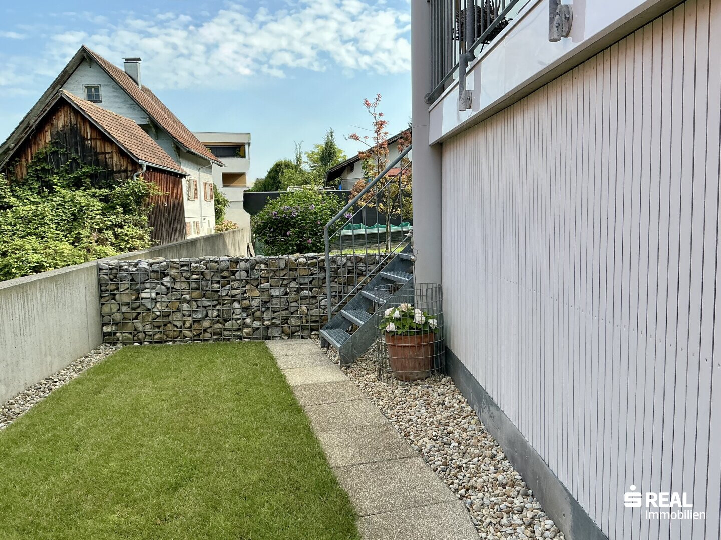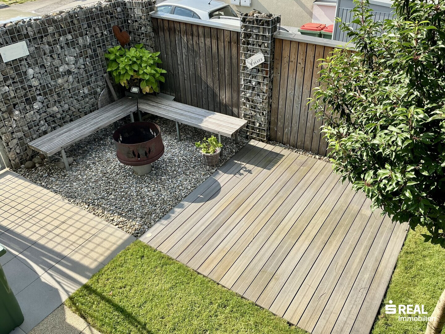 - Terrasse: Sandsteine, elektrische Markise;