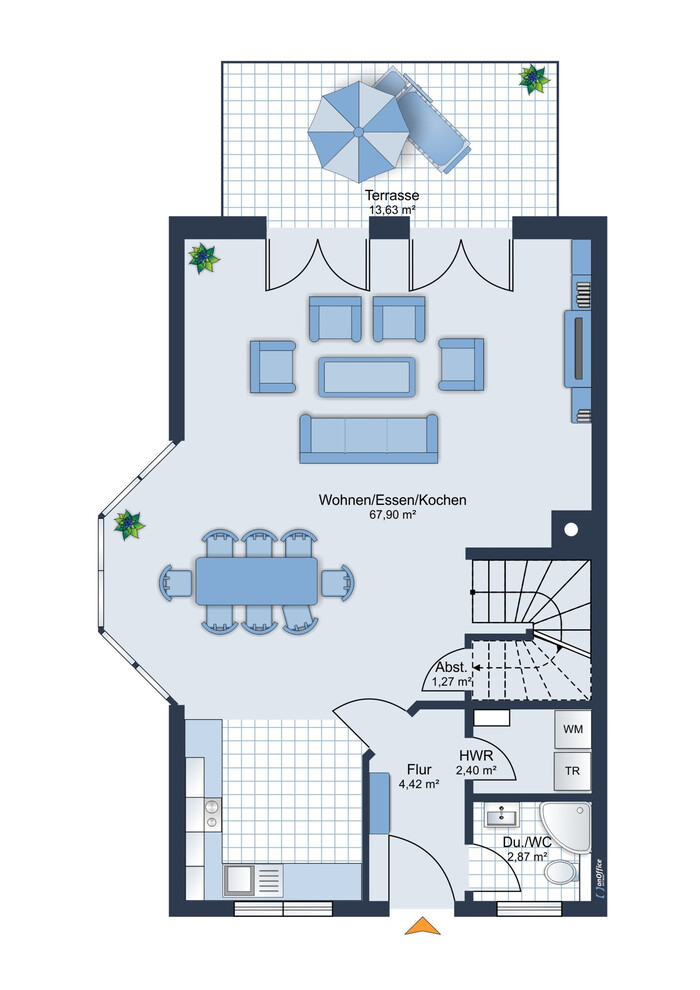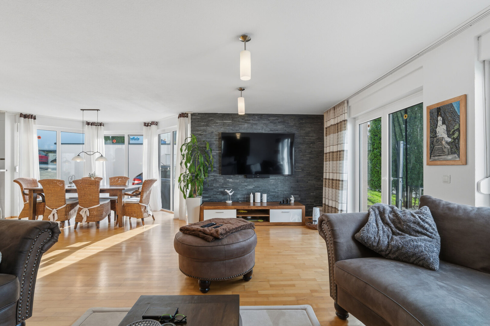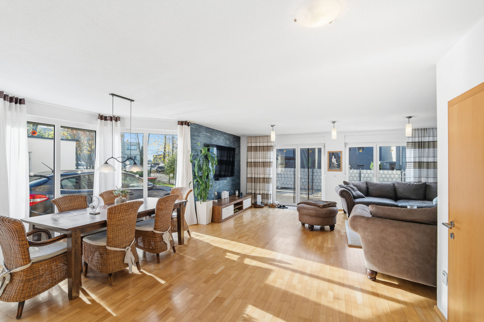 Auf einer Gesamtwohnfläche von 127 m² und über zwei Etagen hinweg präsentiert sich Ihnen ein durchdachtes Raumkonzept. Die moderne Einbauküche lässt keine Wünsche offen und lädt zum gemeinsamen Kochen und Genießen ein. Ergänzt wird das Raumangebot durch ein praktisches Gäste-WC inkl. Dusche, das den Wohnkomfort zusätzlich unterstreicht.