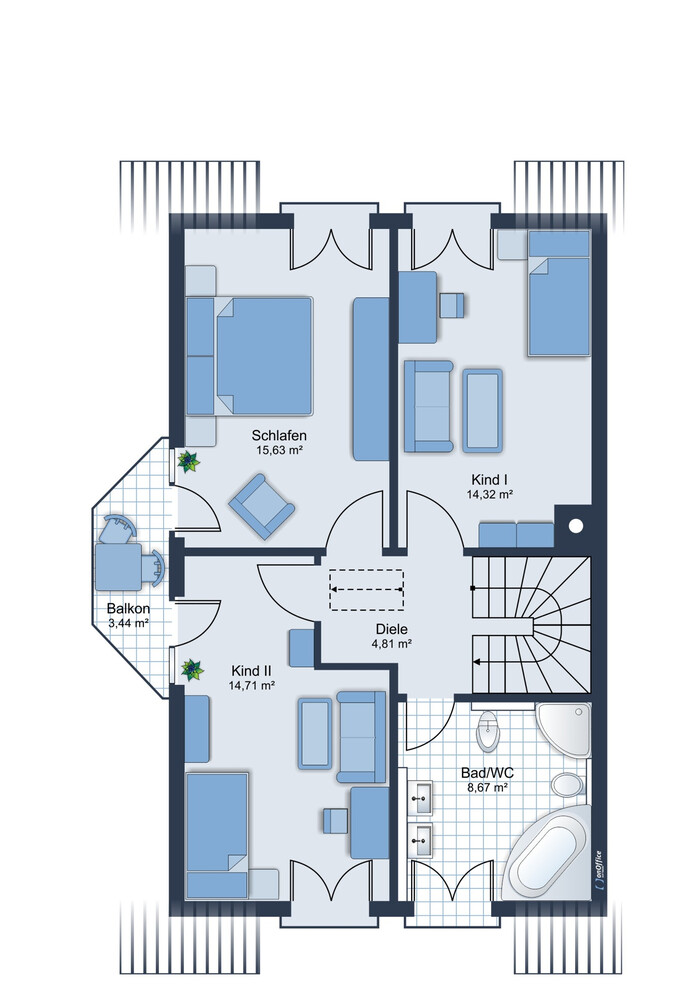Das Grundstück erstreckt sich über ca. 375 m² und bietet Ihnen die Möglichkeit zur Gartennutzung, wo Sie entspannte Stunden im Freien verbringen können. Das Satteldach mit Spitzgaupen verleiht der Immobilie einen besonderen architektonischen Charme.