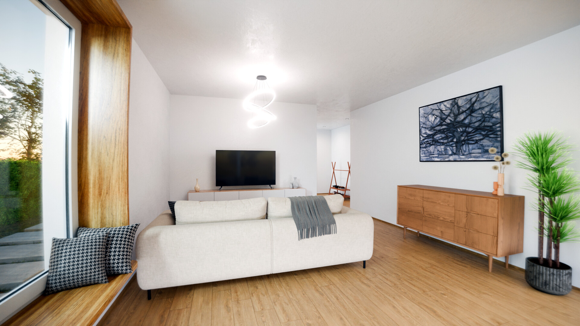 Im Inneren erwartet Sie ein helles und geräumiges Wohnkonzept mit modernen Annehmlichkeiten. Die offene Küche ist perfekt für geselliges Kochen und Essen, während die Schlafzimmer Ruhe und Entspannung bieten. Die großen Fenster lassen viel Tageslicht herein und bieten einen schönen Blick auf die Umgebung.