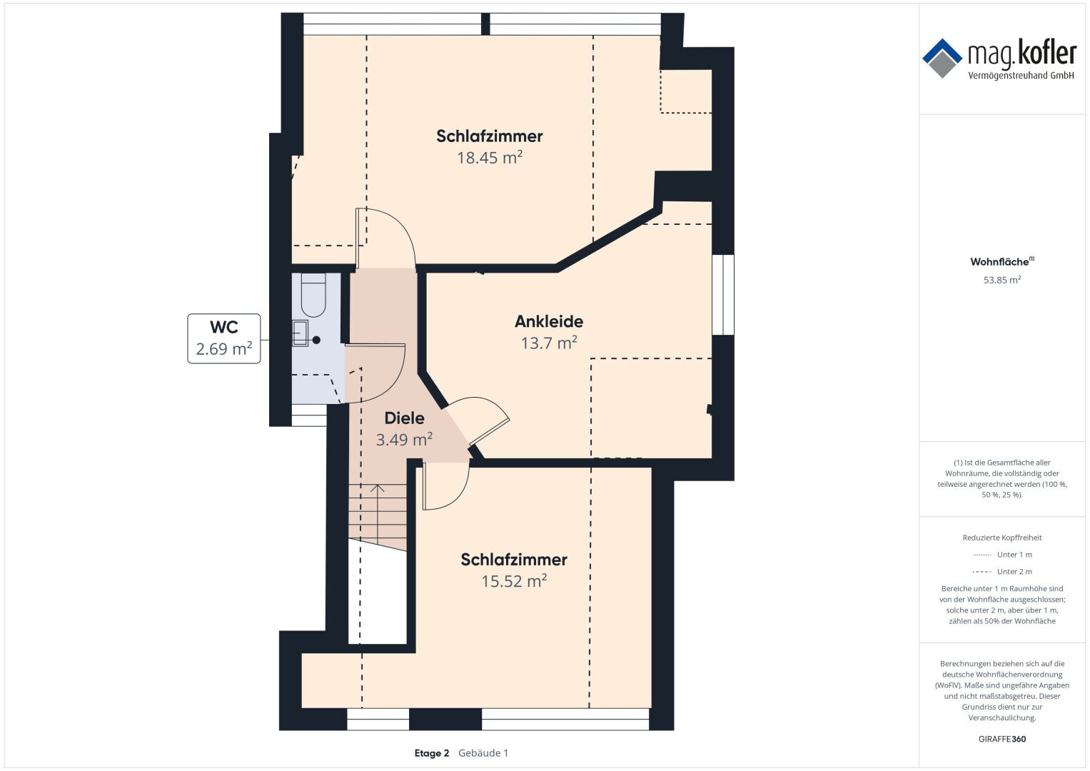 ca. 53,46 m² im Erdgeschoss – eine separate, kompakte Wohnung, ideal für Angehörige, als Einliegerwohnung oder zur Vermietung. Selbst eine Nutzung als Geschäftsraum ist in dieser Einheit möglich.