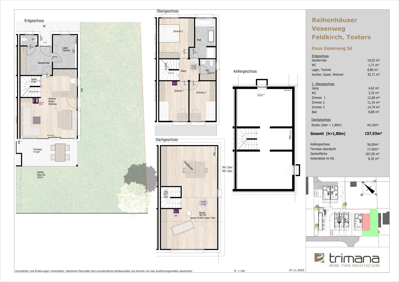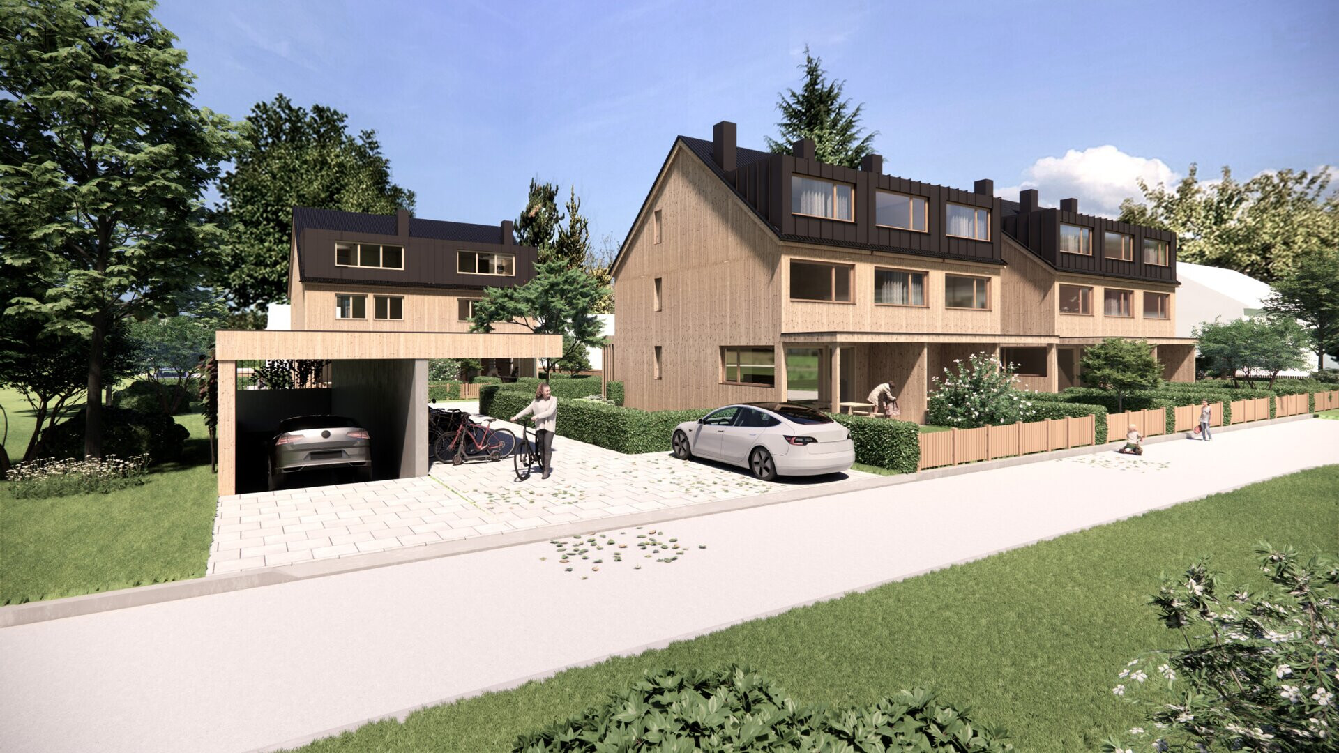 Das Projekt im Kapellenweg in Feldkirch-Tosters beweist mit drei Vollholzreihenhäusern und zwei Doppelhäusern, dass vieles möglich ist, vom 102m² Reihenhaus zum 15ß m² Doppelhaus.