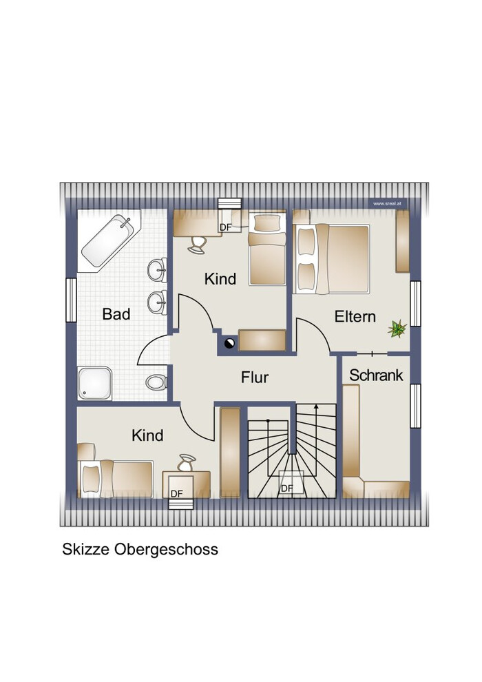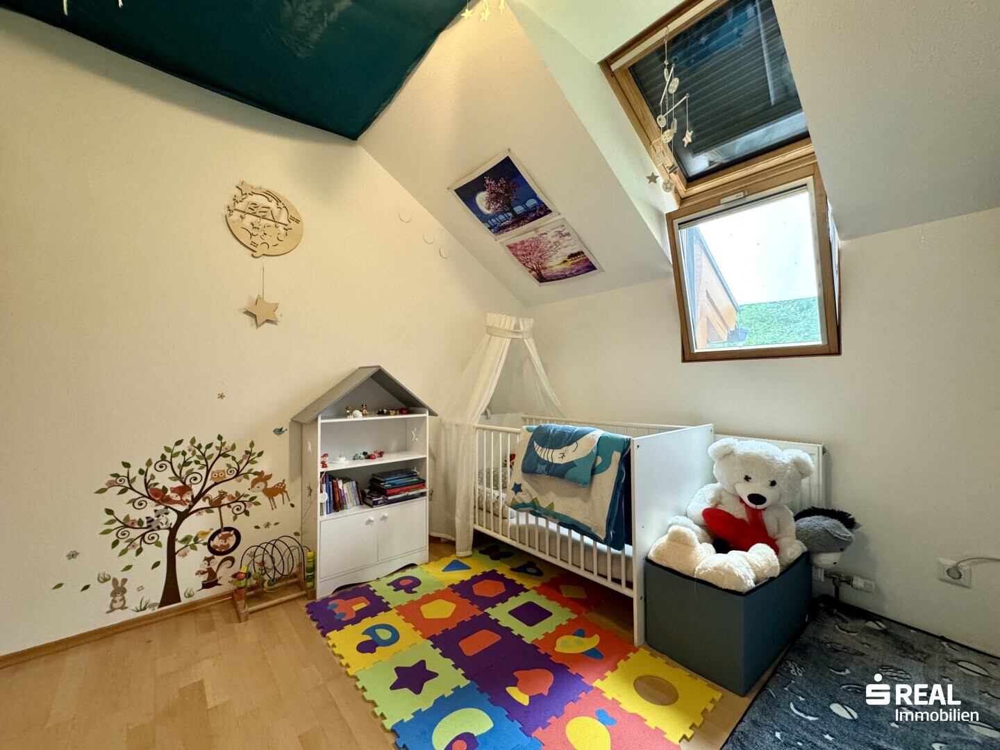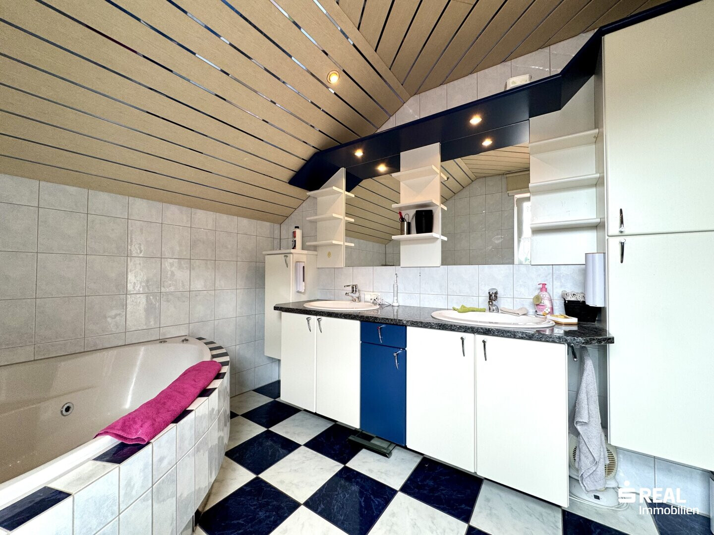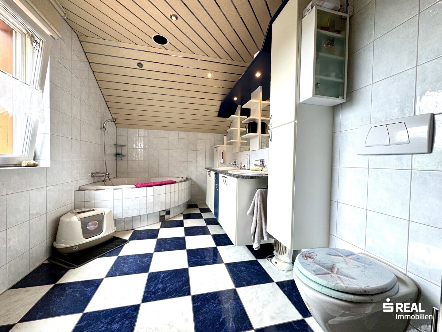 Über eine Treppe gelangen Sie ins Obergeschoss, wo drei Schlafzimmer sowie ein geräumiges Badezimmer mit Badewanne, Dusche, WC und Waschtischverbau zur Verfügung stehen.