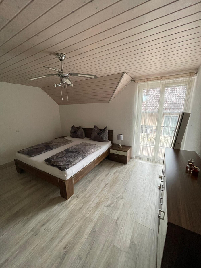 Über das Treppenhaus gelangen Sie ins Obergeschoss, hier stehen Ihnen drei weitere Zimmer und ein Bad zur Verfügung.