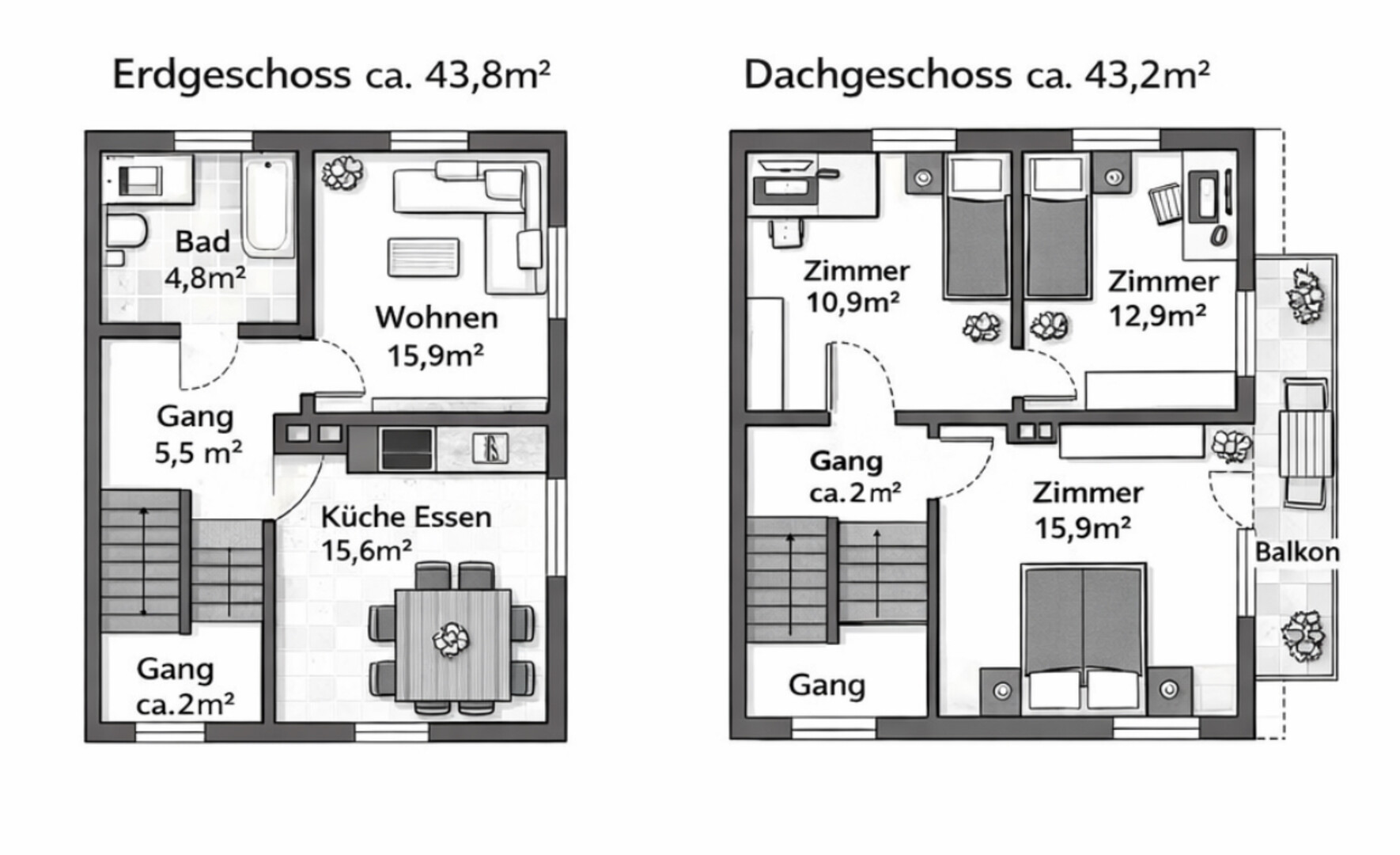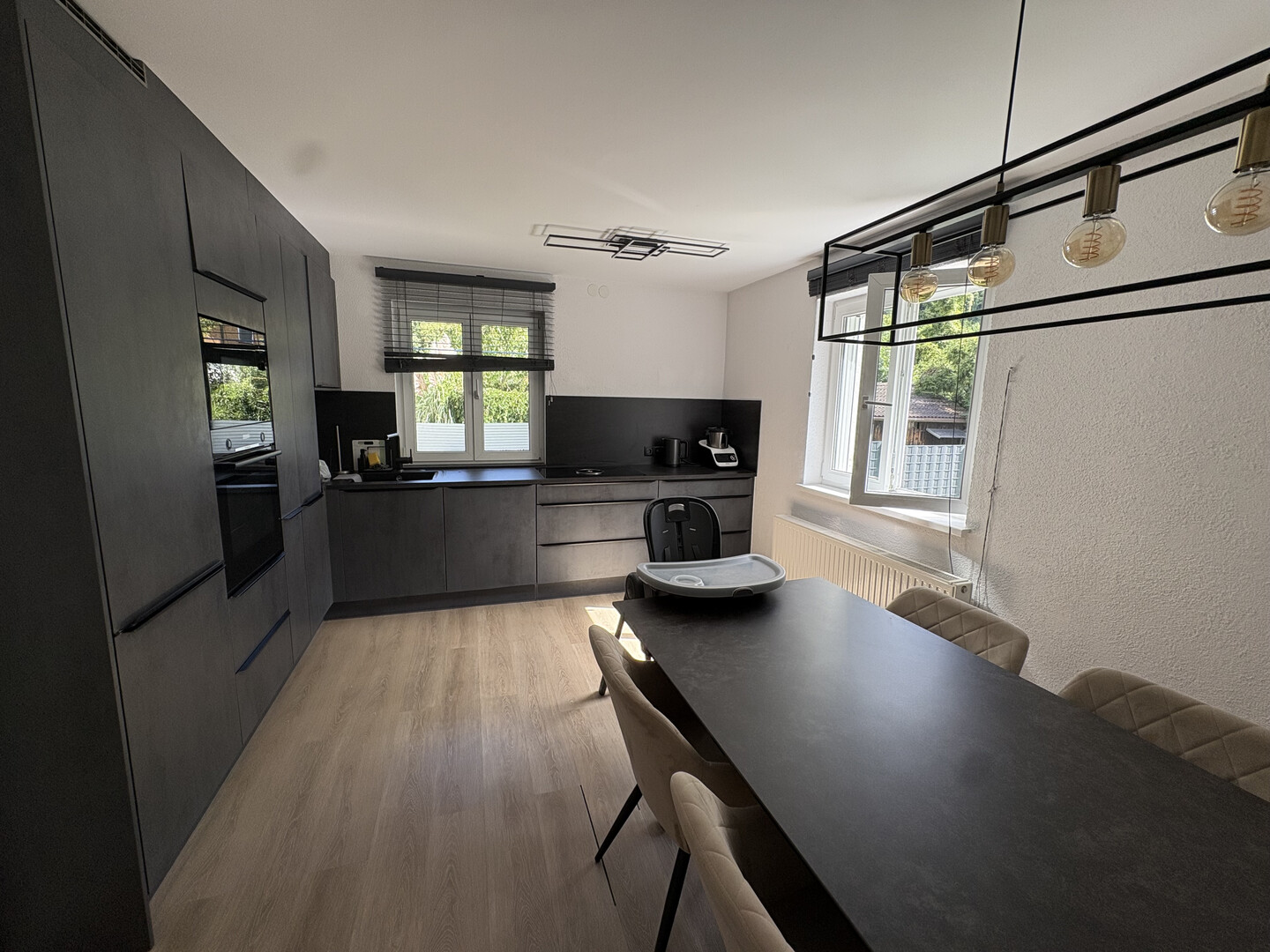 Das Haus verfügt über drei Schlafzimmer, ein modernes Badezimmer sowie eine getrennte Küche und ein Wohnzimmer. Die hochwertige Einbauküche ist mit Bosch-Geräten, einem BORA-Kochfeld und einer Keramik-Arbeitsplatte ausgestattet. Küche und Badezimmer wurden vollständig renoviert und mit hochwertigen Natursteinfliesen sowie neuen Böden versehen.