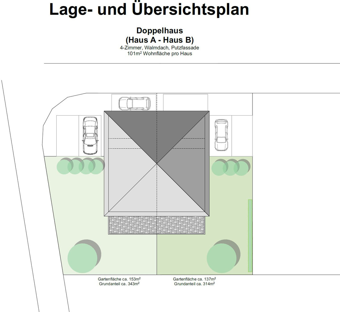 Schönes Doppelhaus mit Walmdach in Planung mit jeweils