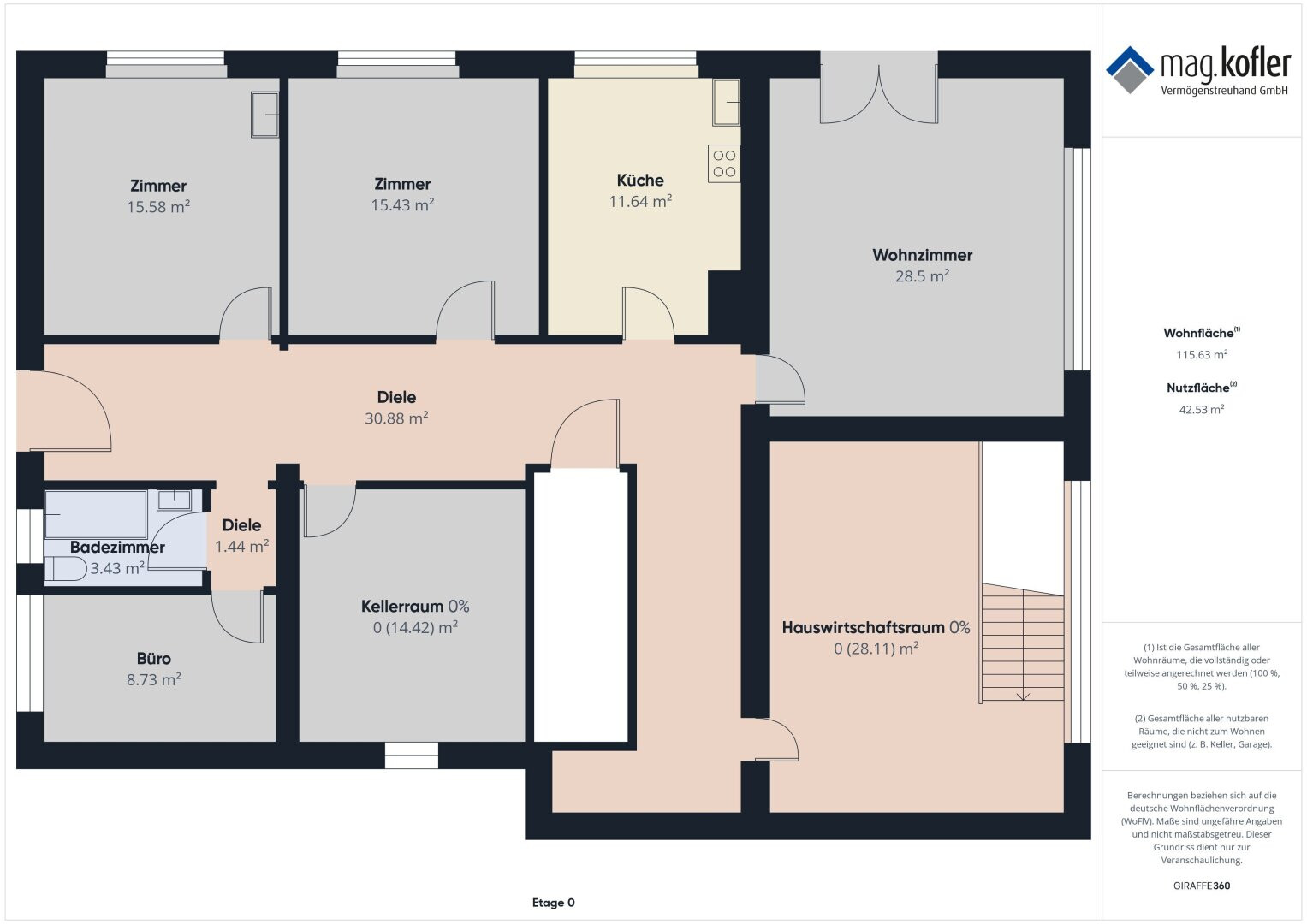 Alle Angaben sind nach bestem Wissen aufbereitet worden. Irrtum und Zwischenverkauf vorbehalten. Dieses Exposé ist eine Vorinformation, als Rechtsgrundlage gilt der abgeschlossene Kaufvertrag. Der angegebene Preis ist ein Richtpreis, der in etwa dem möglichen zukünftigen Kaufpreis entsprechen kann. Da der Preis vom Interessenten mit einem dafür ausgestellten Angebot definiert wird, kann er abhängig von der jeweiligen Nachfrage, auch über dem Richtpreis zu liegen kommen. Die Zustimmung erfolgt ausschließlich vom Abgeber durch Gegenzeichnung des gestellten Angebotes.