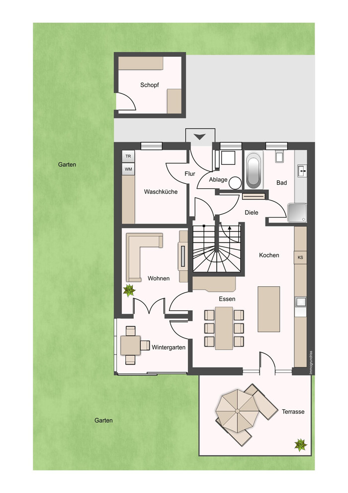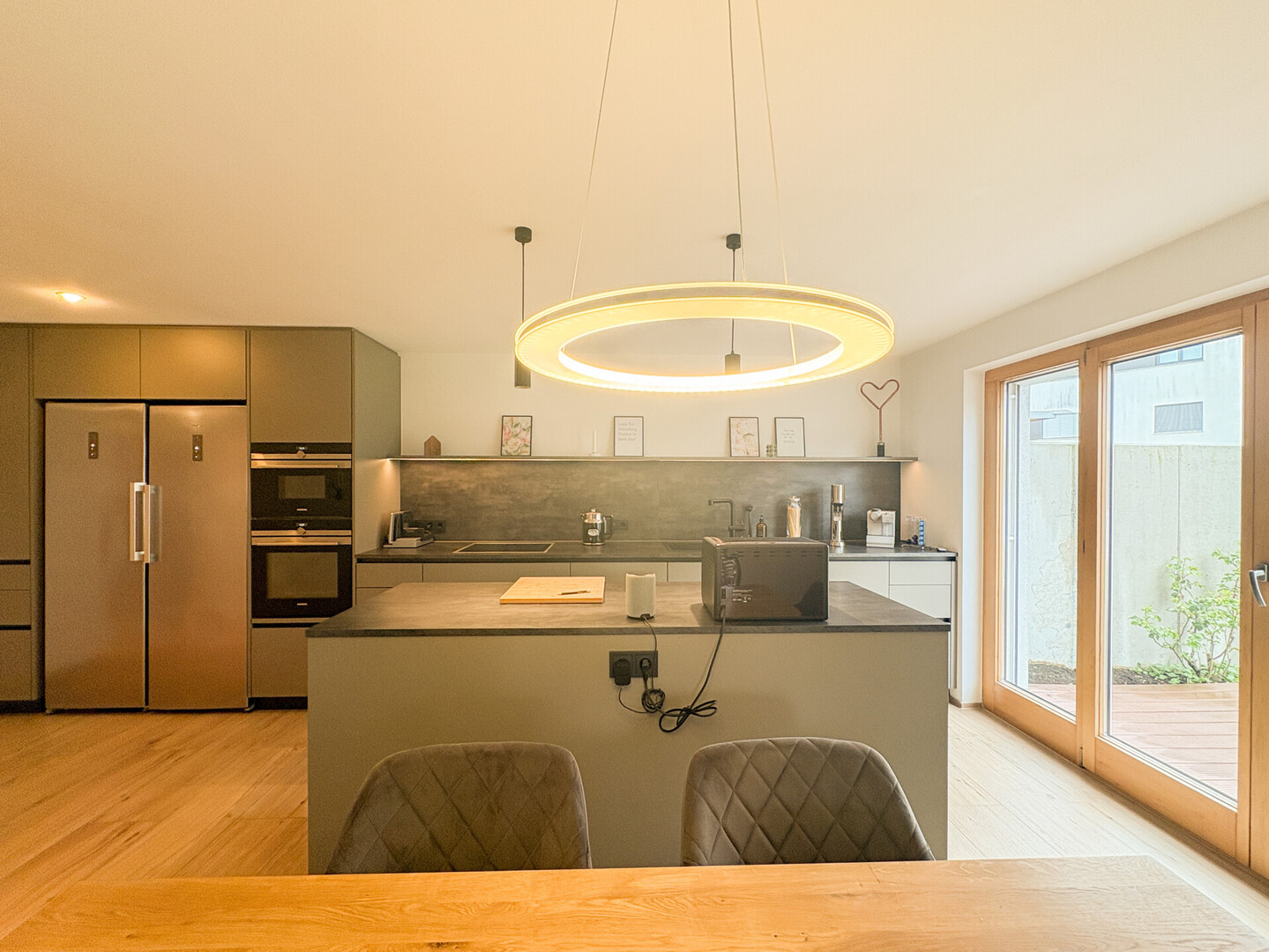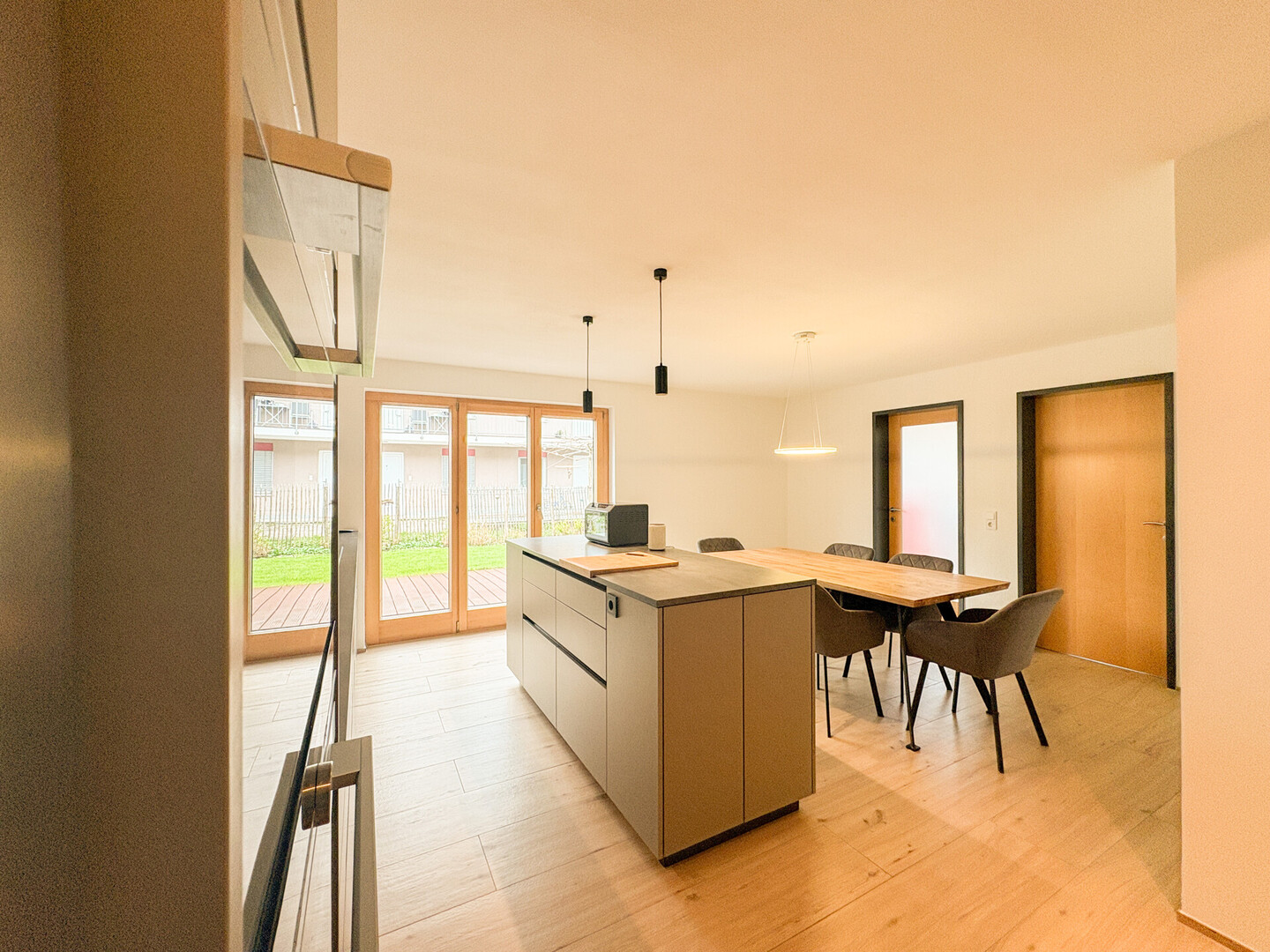 Ein besonderes Highlight stellt die großzügige Terrasse mit angrenzendem Privatgarten dar – ideal für entspannte Stunden im Freien, gesellige Abende oder als geschützter Spielbereich für Kinder.