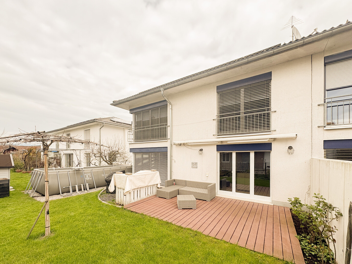 In einer ruhigen und familienfreundlichen Wohngegend von Altach steht diese gepflegte Doppelhaushälfte zum Verkauf – ein echtes Raumwunder mit viel Potenzial. Auf rund 145 m² Wohnnutzfläche, verteilt auf Erd- und Obergeschoss, bietet die Immobilie mit insgesamt fünf Zimmern ausreichend Platz für Paare oder Familien mit Platzbedarf.