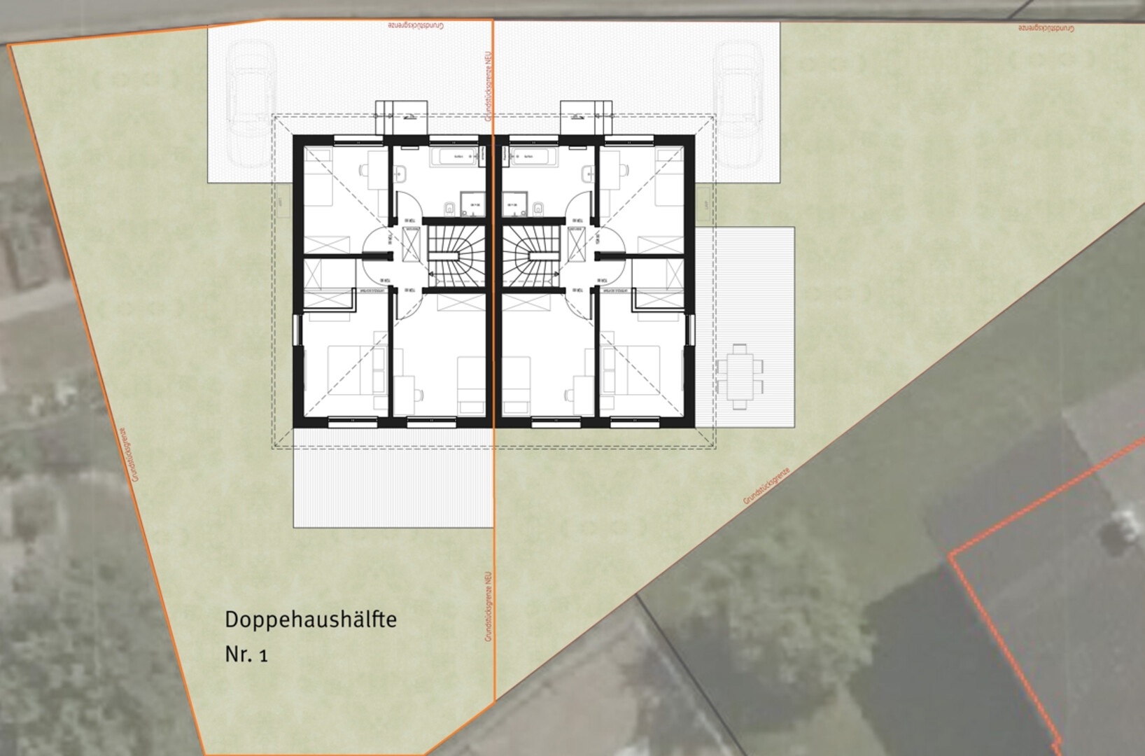 Pläne für ein gut geschnittenes Doppelhaus vorhanden