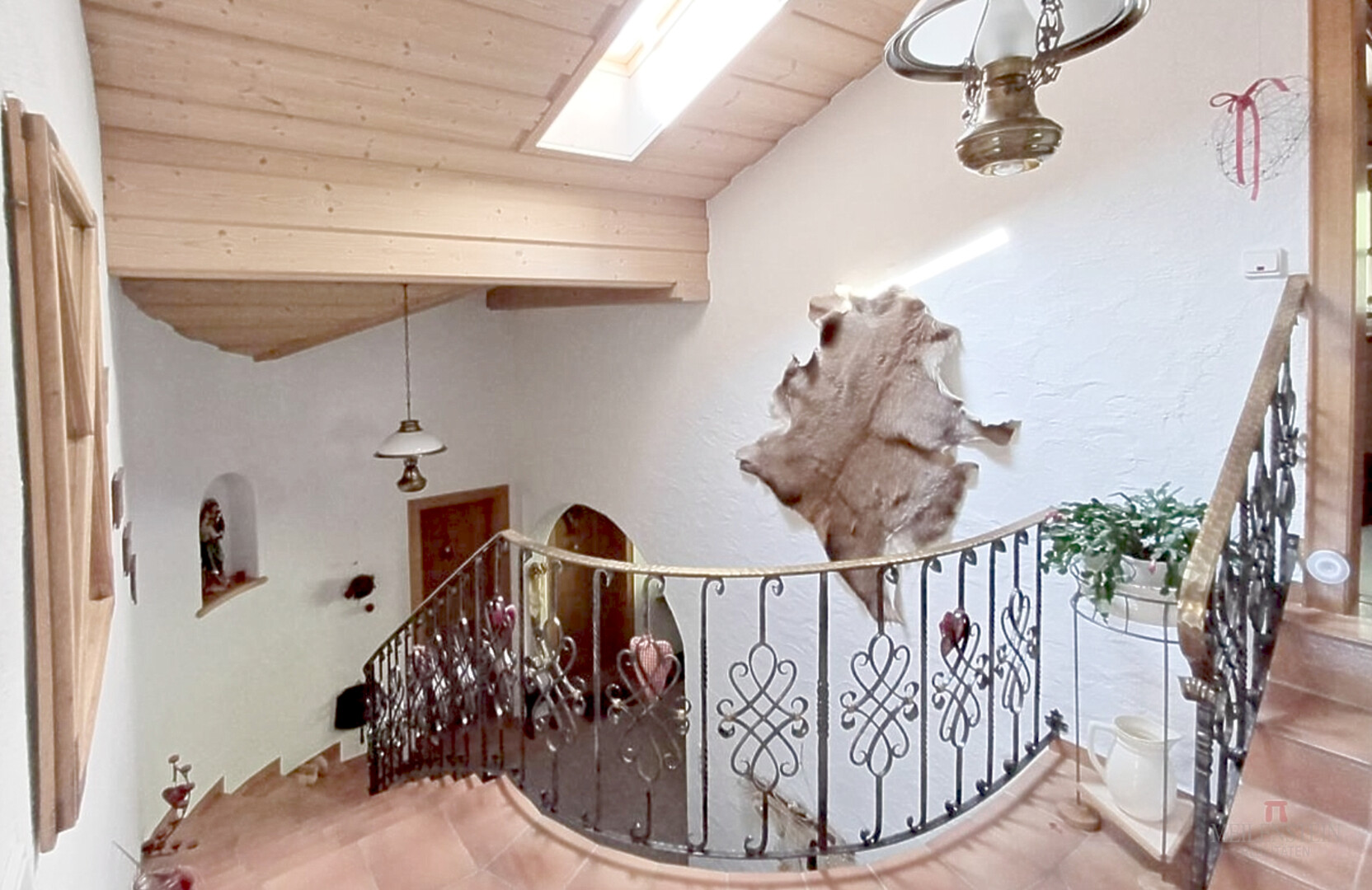 Das Wohnzimmer mit einem offenen Kamin lädt zum Verweilen ein. Im Dachgeschoß finden Sie drei Schlafzimmer. Das Elternschlafzimmer hat einen Zugang zum Balkon mit Aussichtsblick. Ein WC und ein großzügiges Badezimmer mit Badewanne und Dusche sind ebenfalls vorhanden.