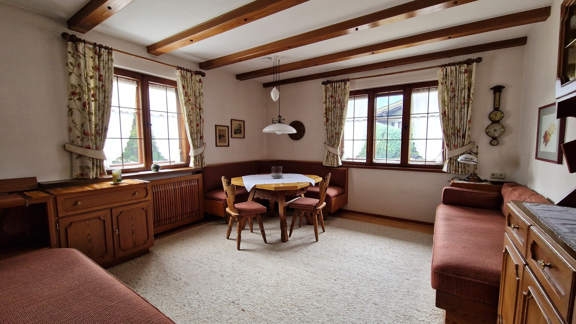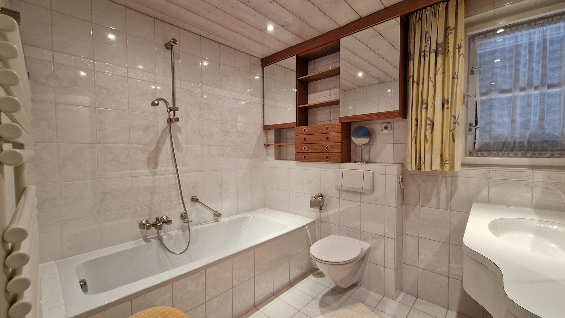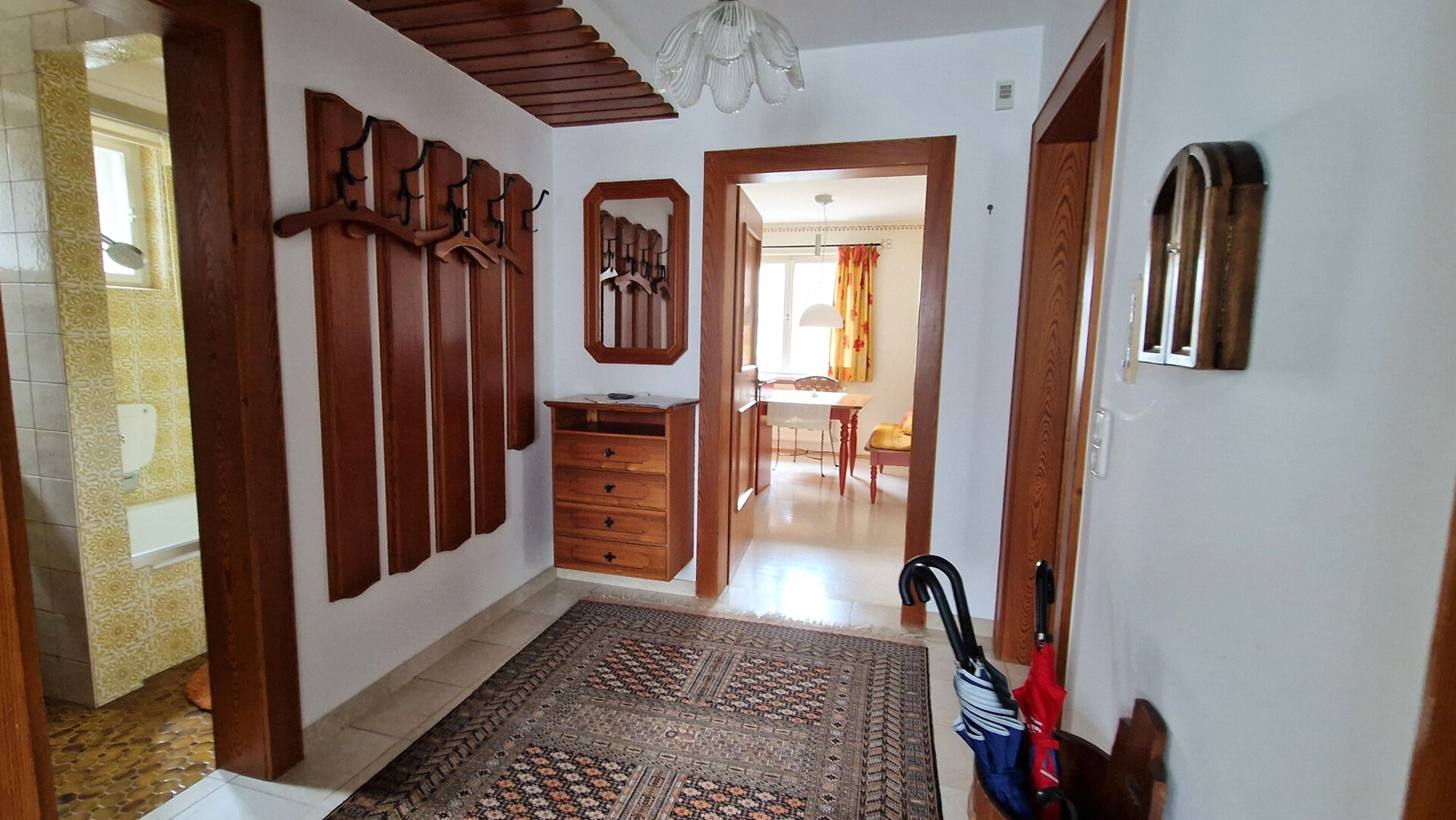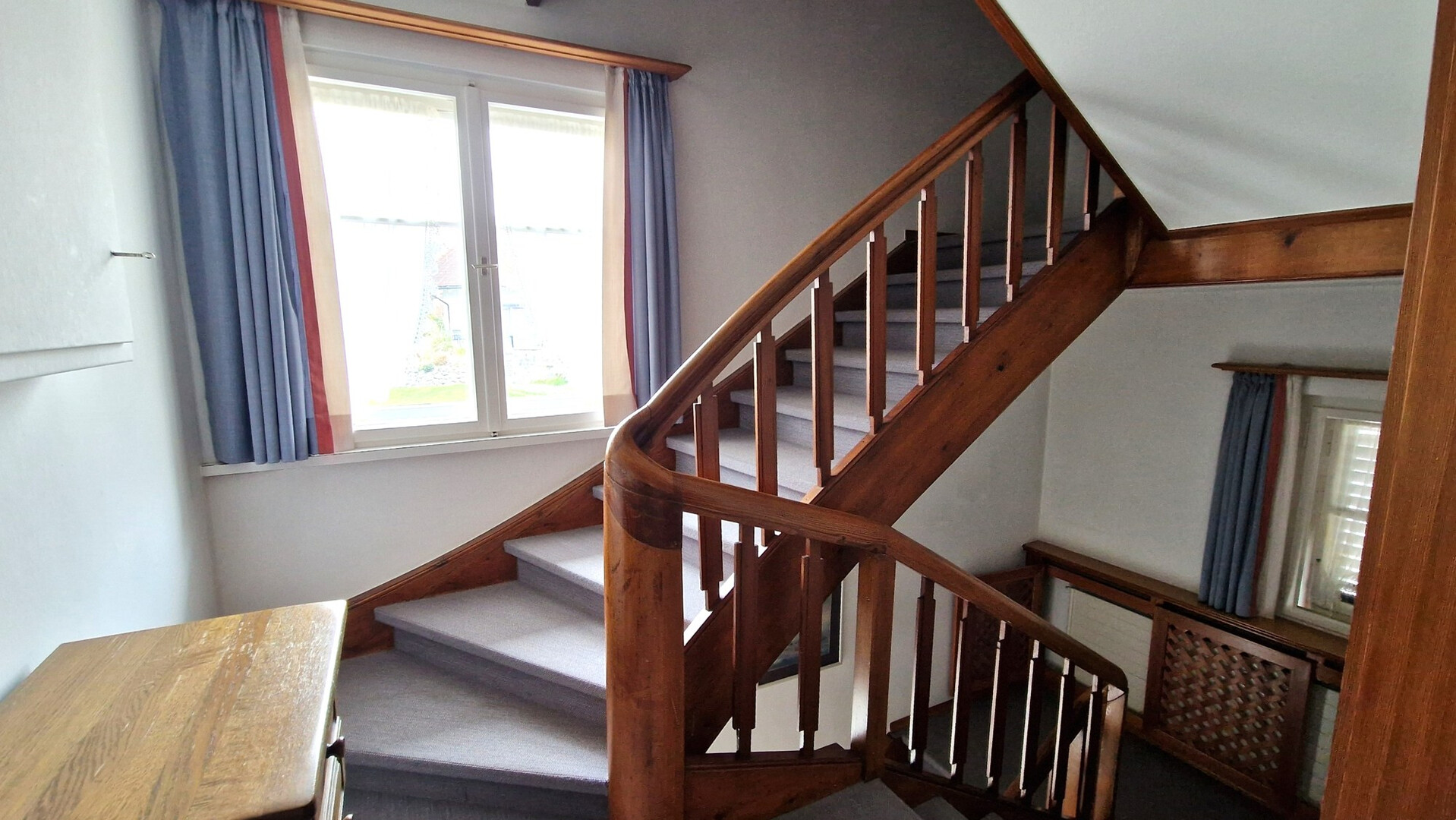 Das Dachgeschoß verfügt über ein separates WC, einen ehemaligen Küchenraum mit anschließendem Abstellraum, eine Dusche, einem Schlupf sowie zwei Schlafzimmer mit einem kleinen Balkon.