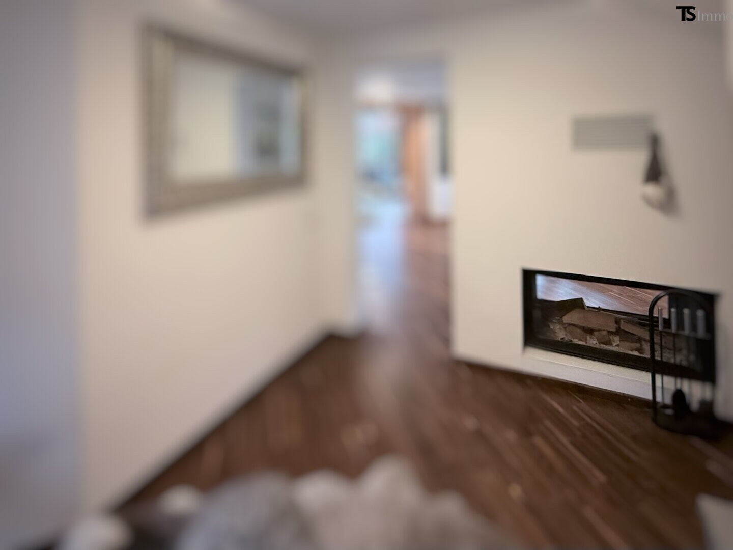 Offener Kamin als stilvoller Raumteiler zwischen Lobby/Eingangsbereich und Esszimmer