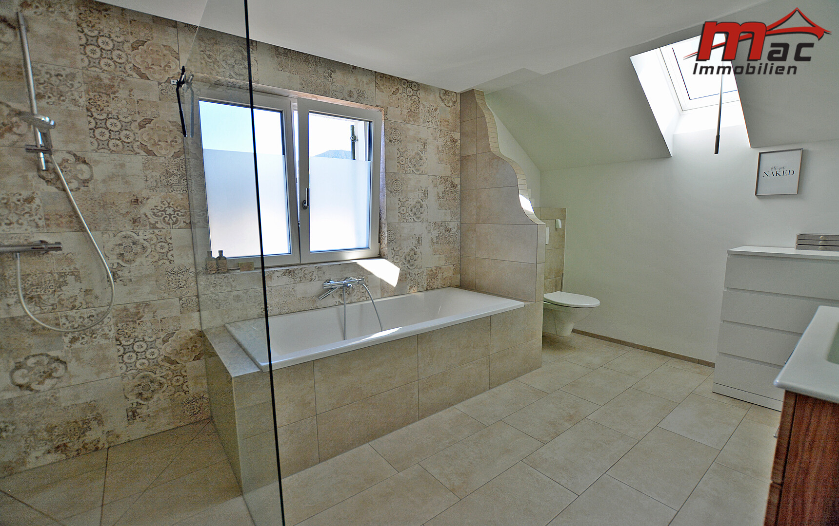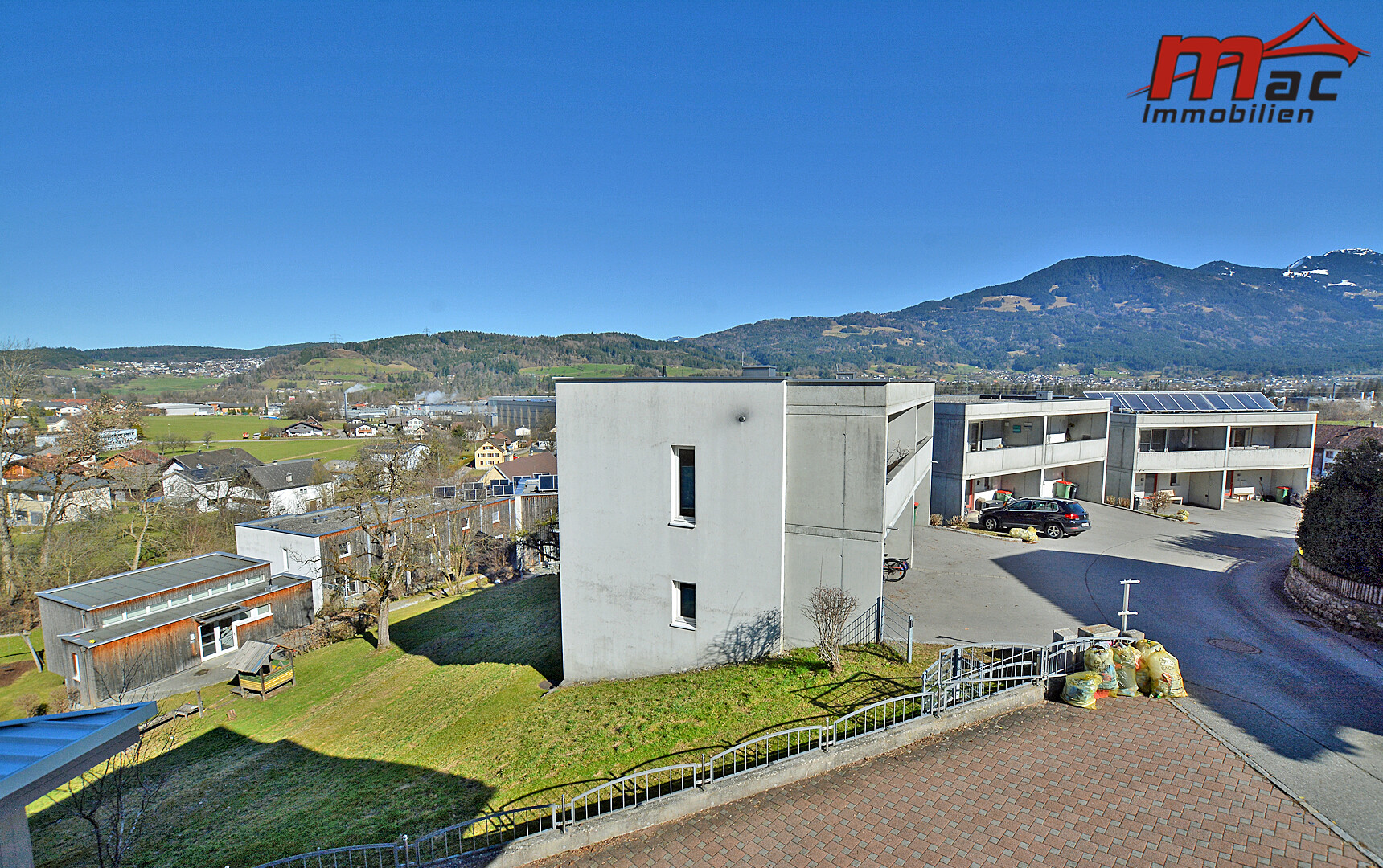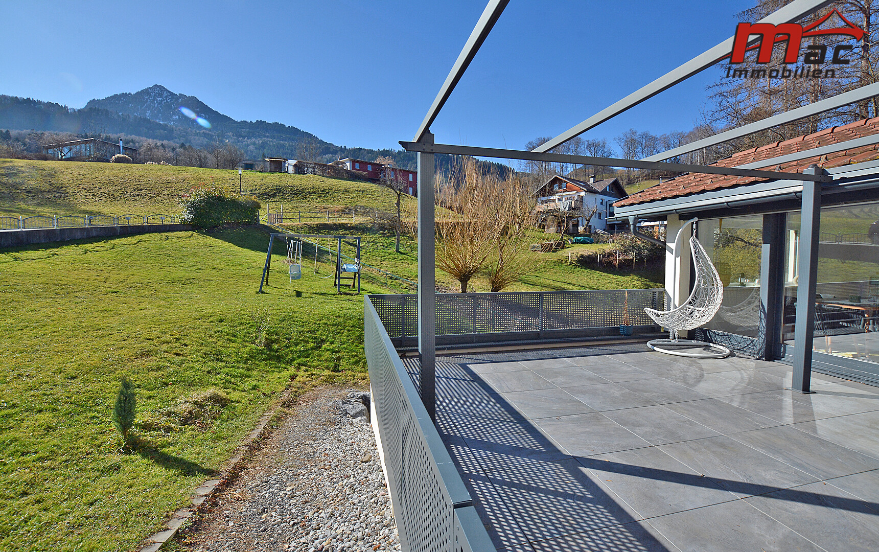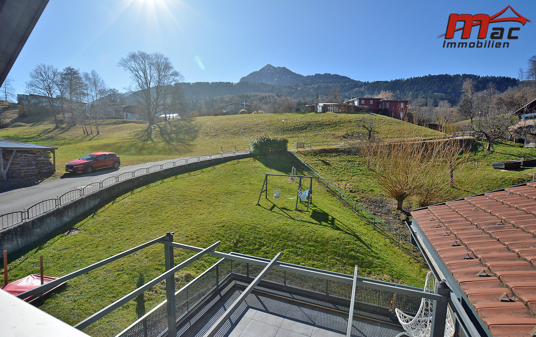 Ergänzt wird dieser durch die 25,15 m² große, teilweise überdachte und beschattete Terrasse in Südausrichtung, die mit ihrer wunderschönen Aussicht und ganztägigen Besonnung von früh bis abends begeistert.