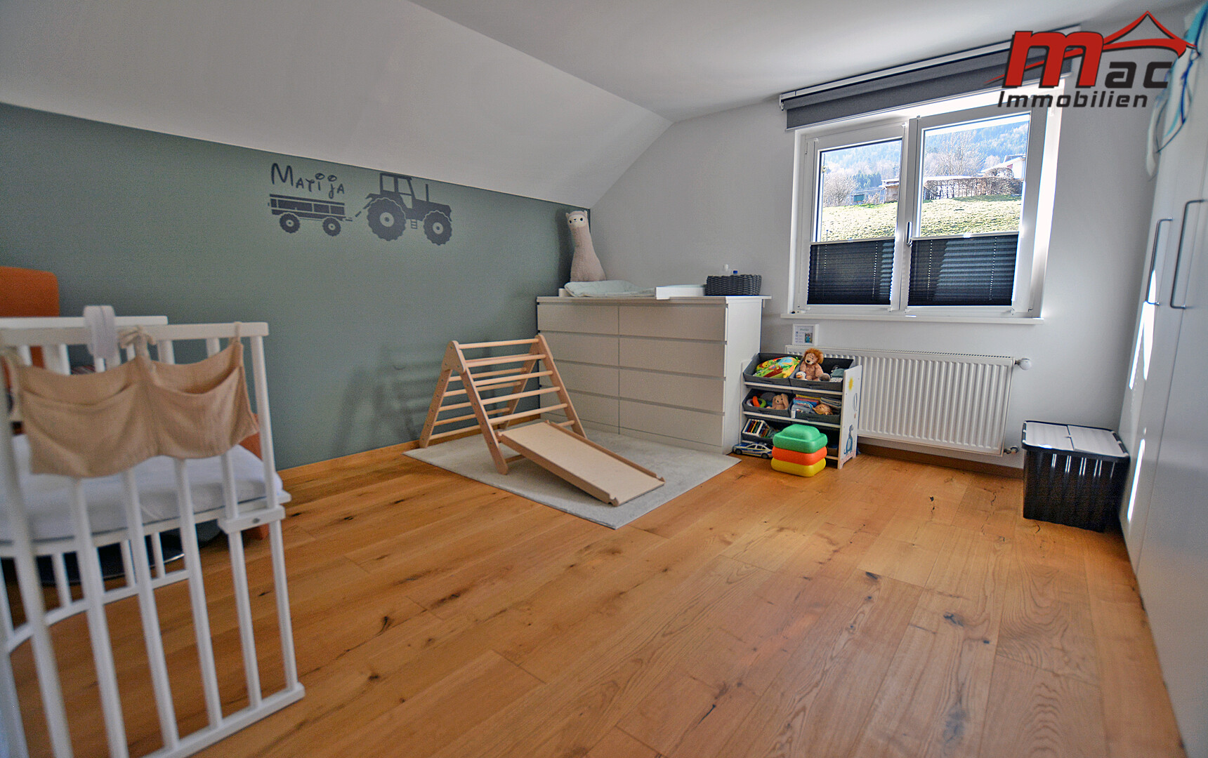 Zusätzlich stehen eine weitere Garage mit 18,30 m² sowie vier Außenstellplätze direkt vor dem Haus zur Verfügung. Drei weitere Besucherstellplätze können an der Straße für € 40,- pro Jahr angemietet werden.