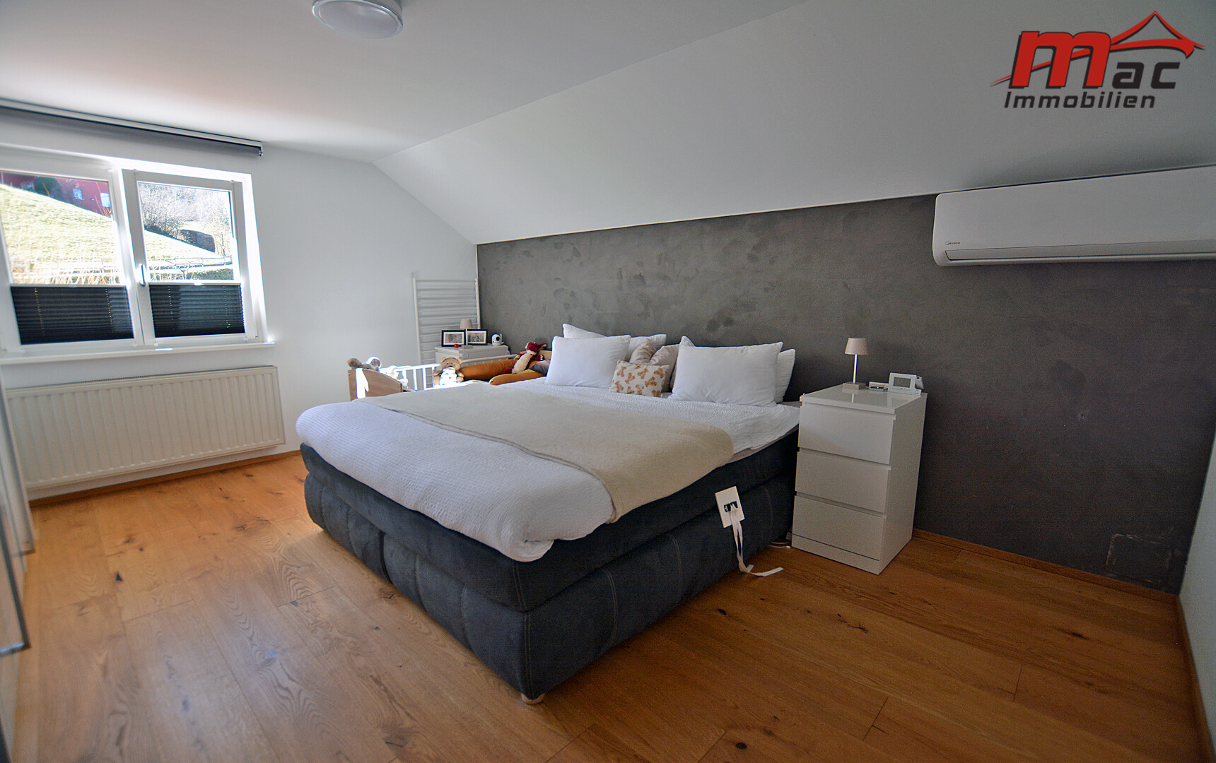 Für angenehme Temperaturen in den Sommermonaten sorgen zwei separate Kühlgeräte im Koch- und Essbereich sowie im Schlafzimmer.