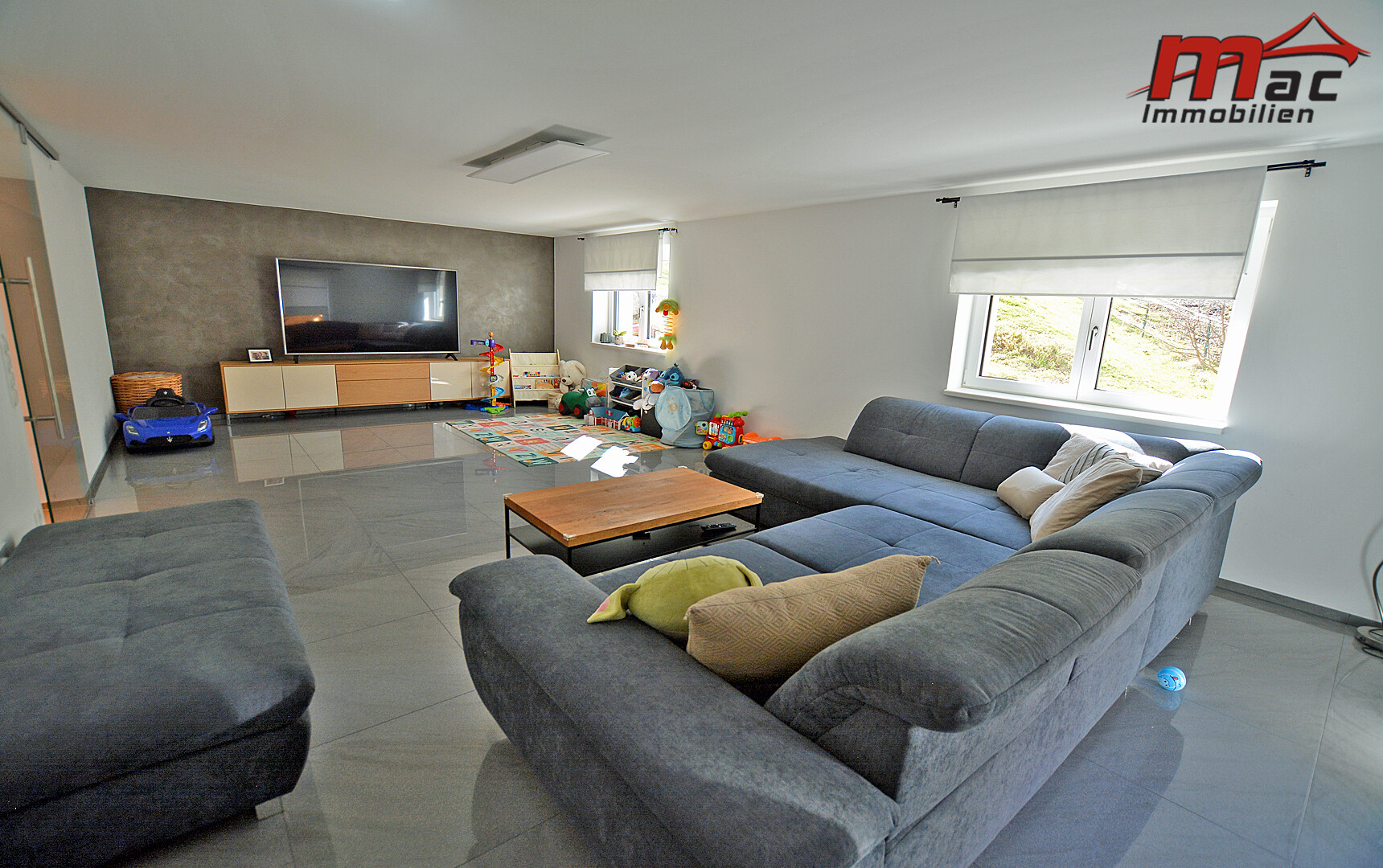 Je nach Bedarf stehen drei bis fünf Schlafzimmer zur Verfügung. Das über 30 m² große Wohnzimmer im Untergeschoss bietet zusätzliches Potenzial und kann bei Bedarf in zwei geräumige Schlafzimmer umgewandelt werden.