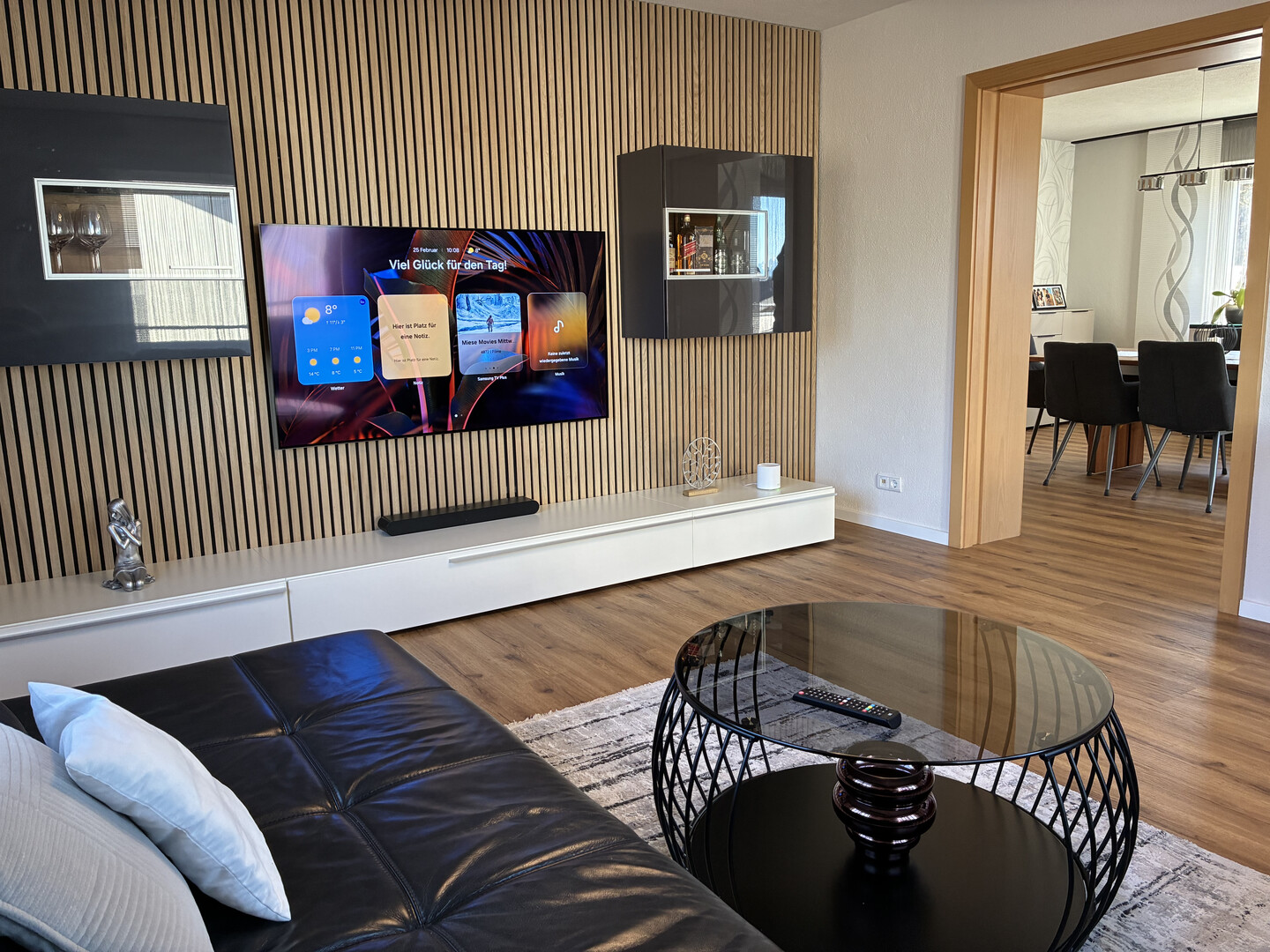 Die Aufteilung im Erdgeschoss besticht durch großzügige Flächen, eine vom Tischler angefertigte Küche sowie das Esszimmer und das Wohnzimmer.