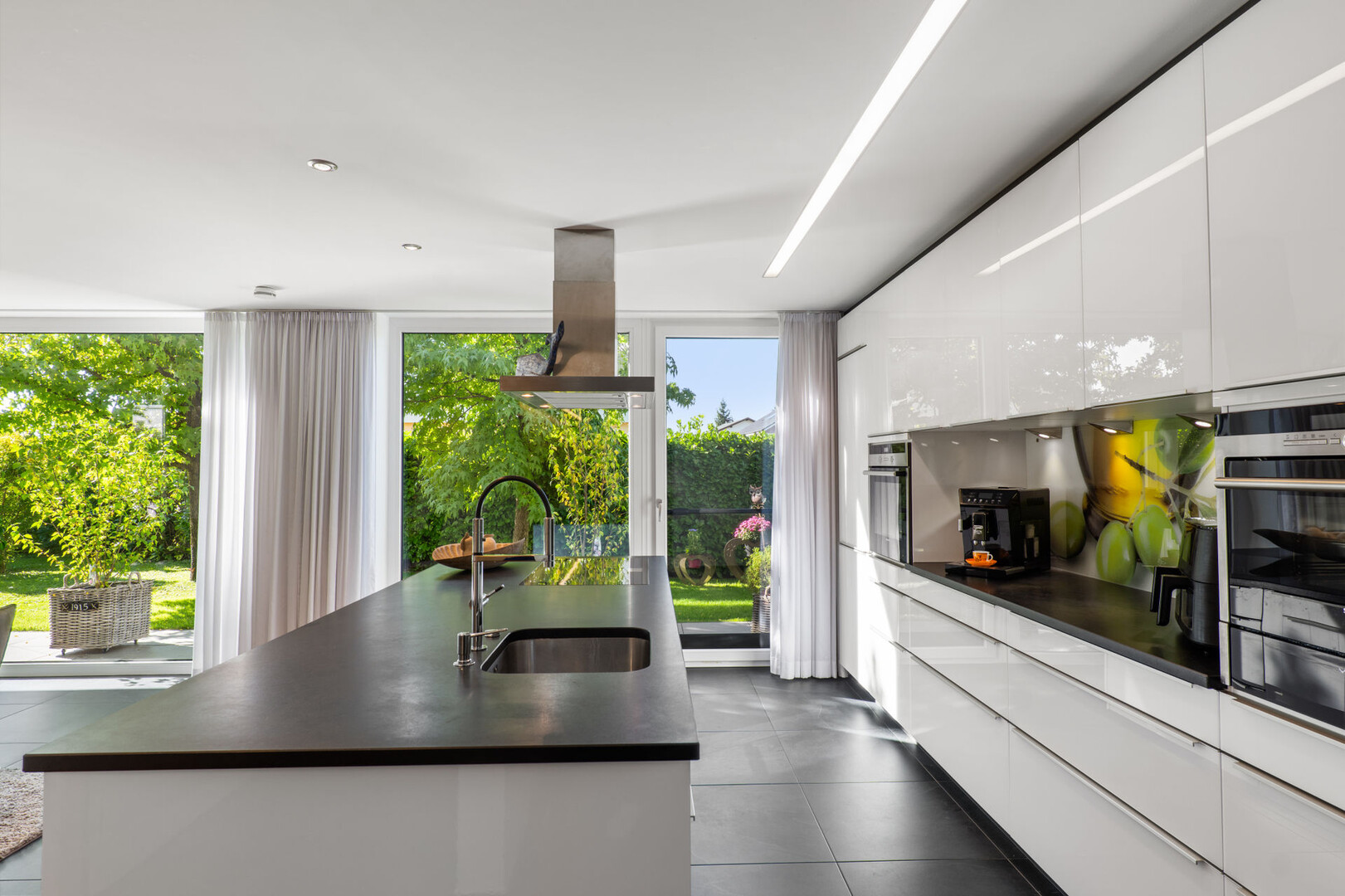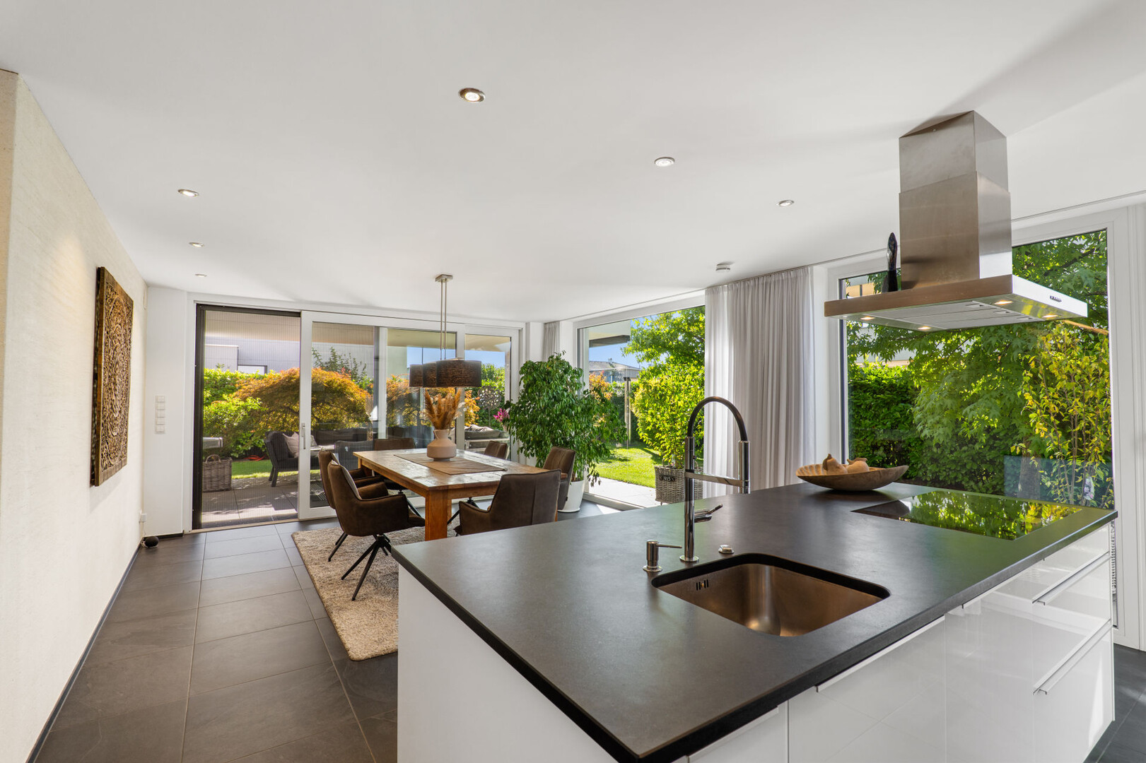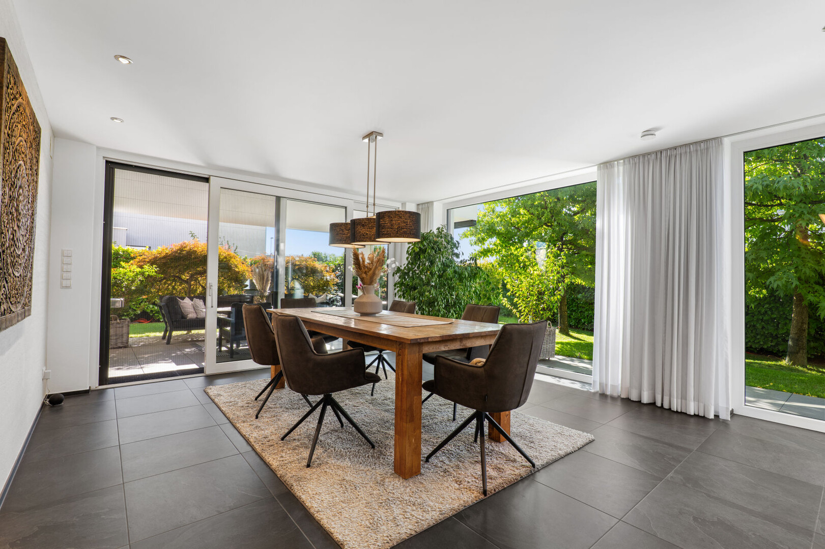 Willkommen in diesem schönen Anwesen in Hard. Dieses tolle Einfamilienhaus, erbaut 2013, bietet auf ca. 241 Quadratmetern unvergleichlichen Luxus und Komfort. Mit 7 Zimmern, darunter 3 Schlafzimmer, Arbeitszimmer , Wohnzimmer, Waschraum und Koch-/Esszimmer, ist dies der perfekte Rückzugsort für Ihre Familie. Der offene Koch-/Essbereich sowie das Wohnzimmer im Obergeschoss verfügen beide über ca. 35 m² und bieten genügen Platz für gesellige Abende mit Familie und Freunden. Die Küche ist sehr gut ausgestattet und verfügt über einen Backofen, Warmhalteschublade und einen Dampfgarer von der Firma Siemens.