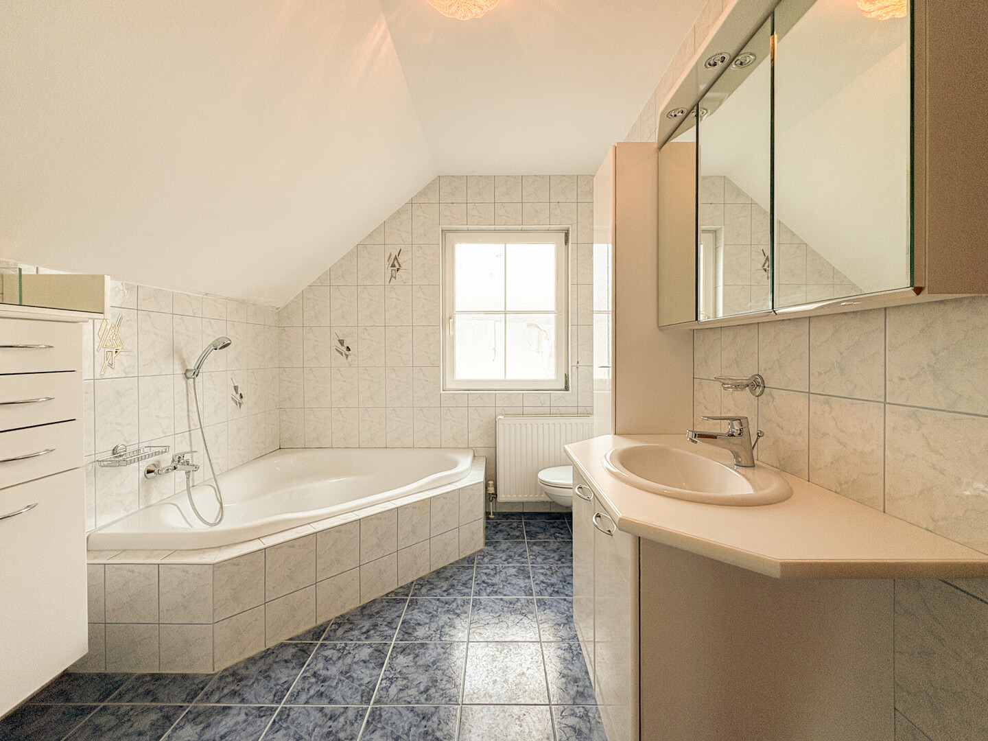 Bad mit: Badewanne, Dusche, Fenster