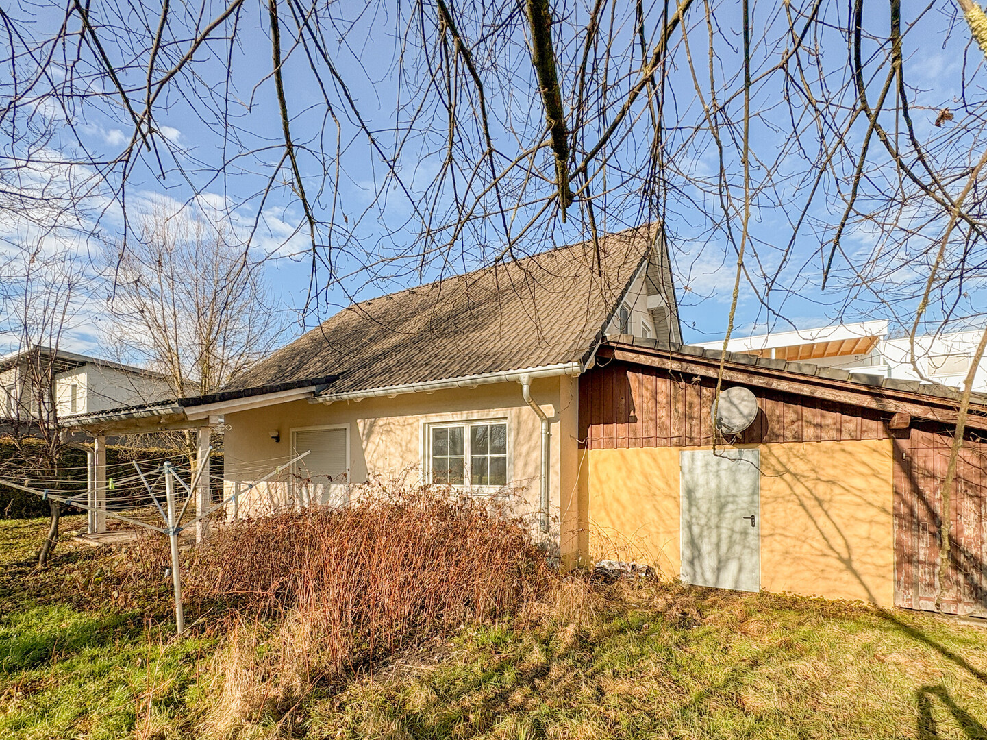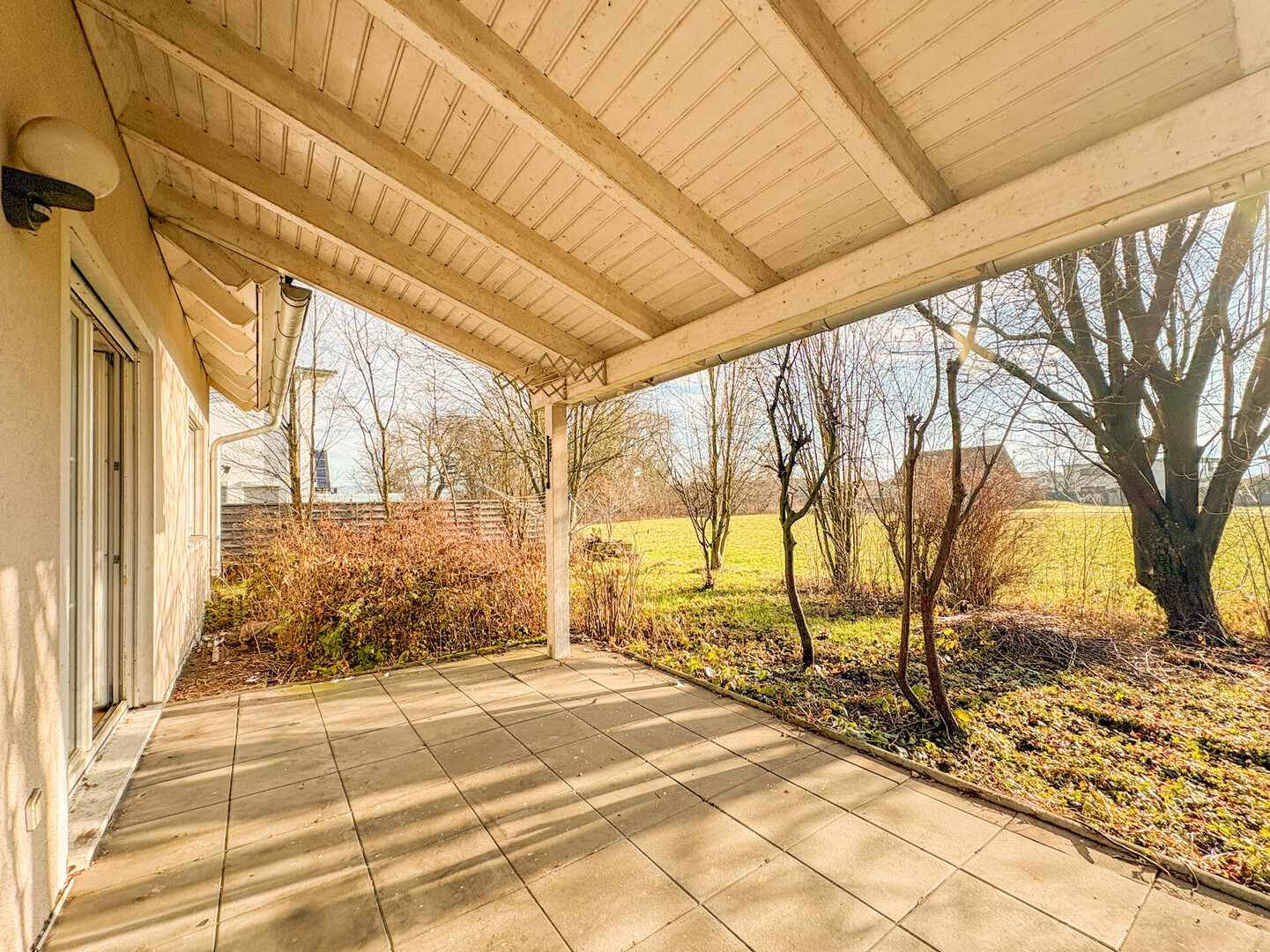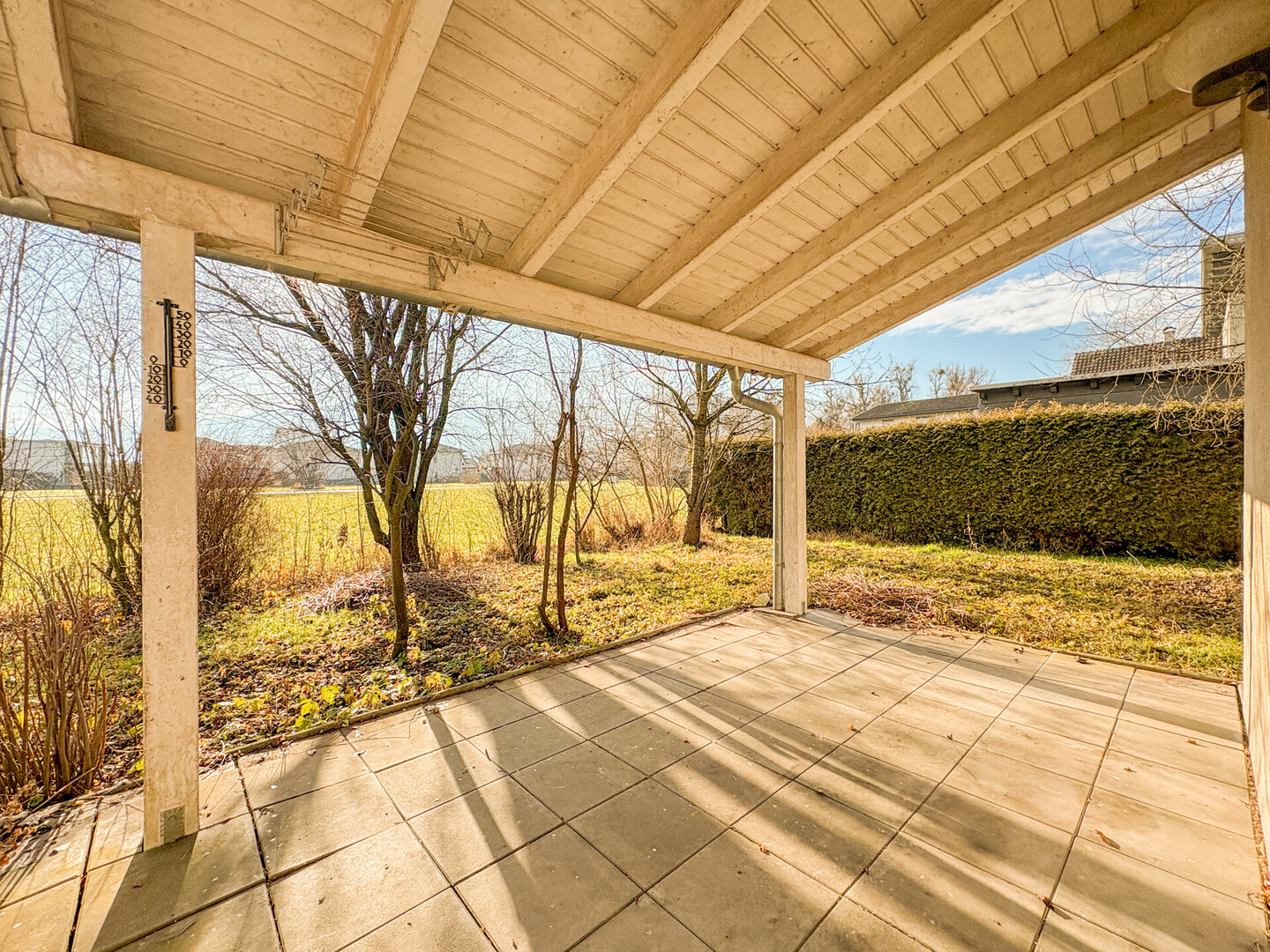 Ein sonniger Garten mit überdachter Terrasse laden zum Ankommen und Wohlfühlen ein, die Einzelgarage sowie ein Fahrradraum bzw. Werkstatt runden das Angebot ab.