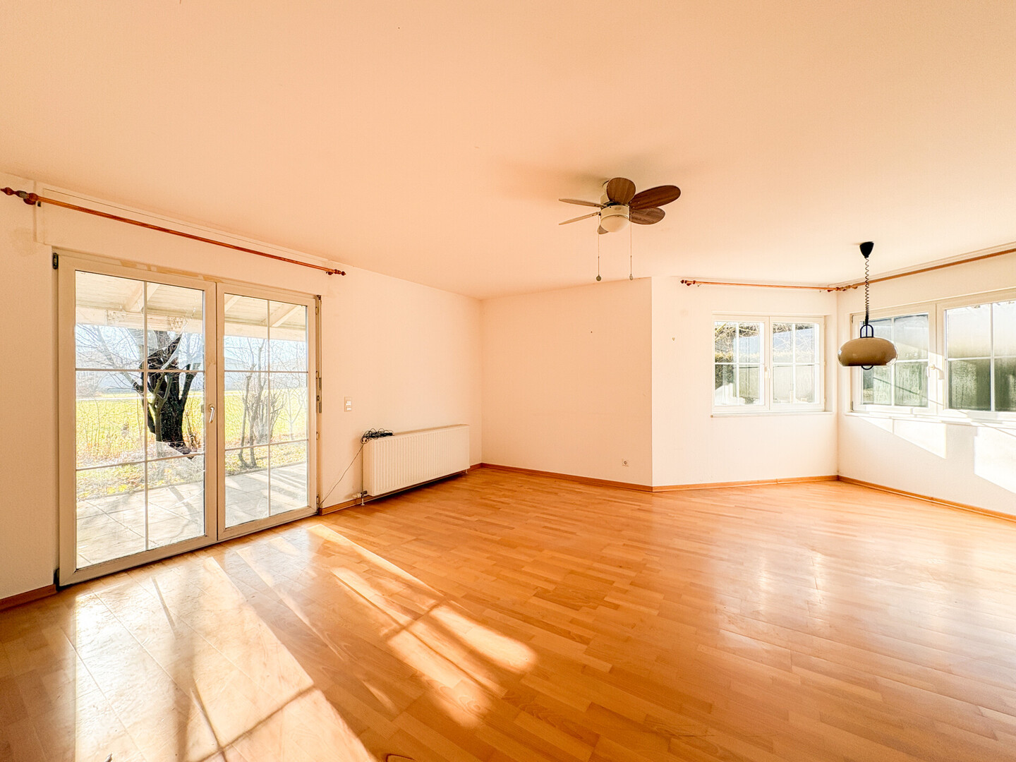 Im Erdgeschoss erwartet Sie ein offener Wohnbereich mit direktem Zugang in den Garten – perfekt für gemeinsame Stunden, Spiel und Erholung im Freien. Die abgetrennte Küche sorgt für Ordnung und Ruhe im Alltag. Ergänzt wird diese Ebene durch ein separates Zimmer/Büro, einen praktischen Technikraum mit Anschlussmöglichkeiten für Waschmaschine/Trockner.