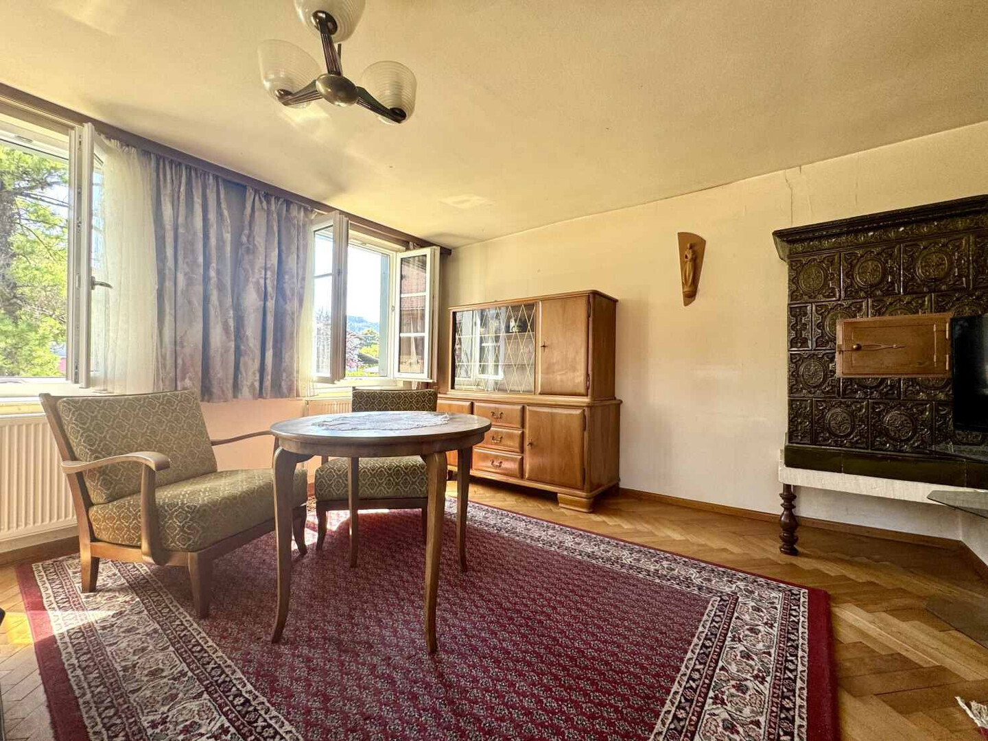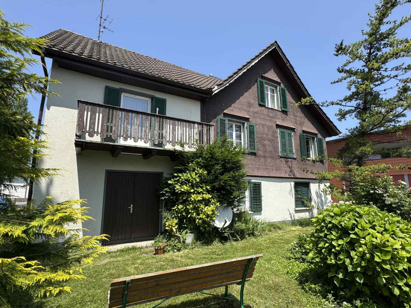 Im Erdgeschoss befinden sich eine Garage, eine großzügige Werkstatt sowie mehrere Nebenräume, die viel Platz für Hobbys, Lager oder handwerkliche Tätigkeiten bieten.