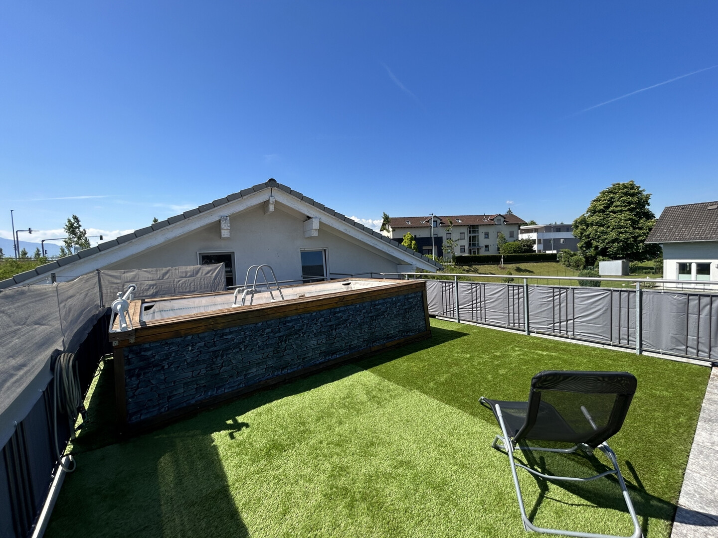 Großzügige Dachterrasse auf der Garage mit Zugang vom Garten