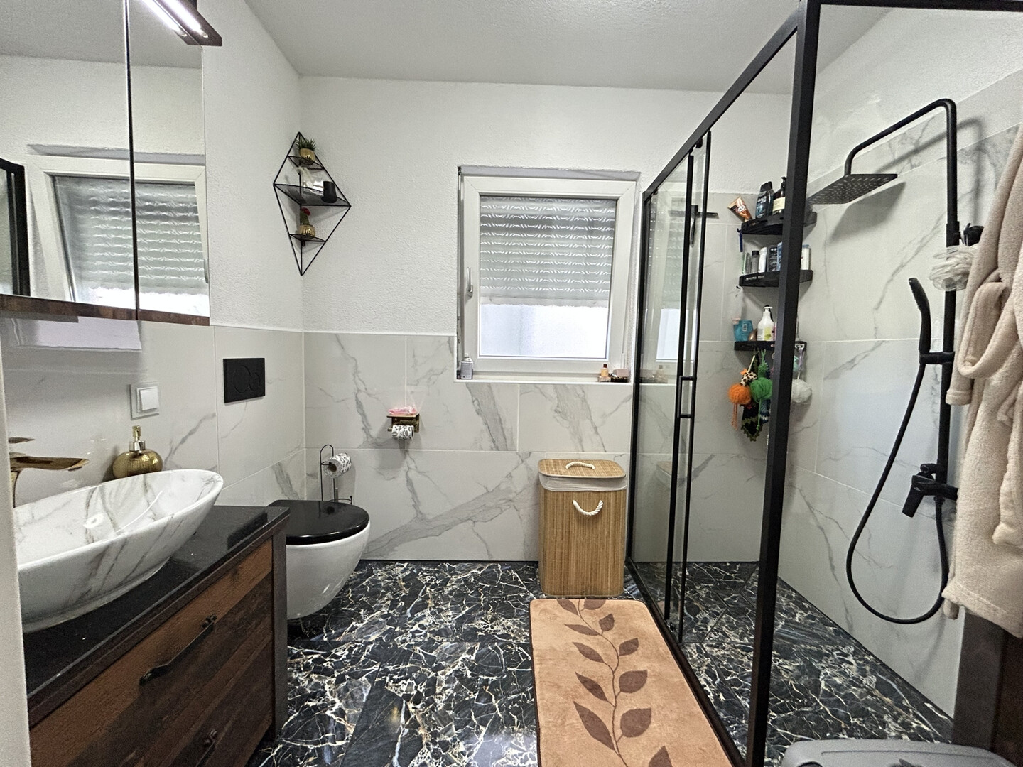Erdgeschoss: begehbare Dusche, WC, modernes Design