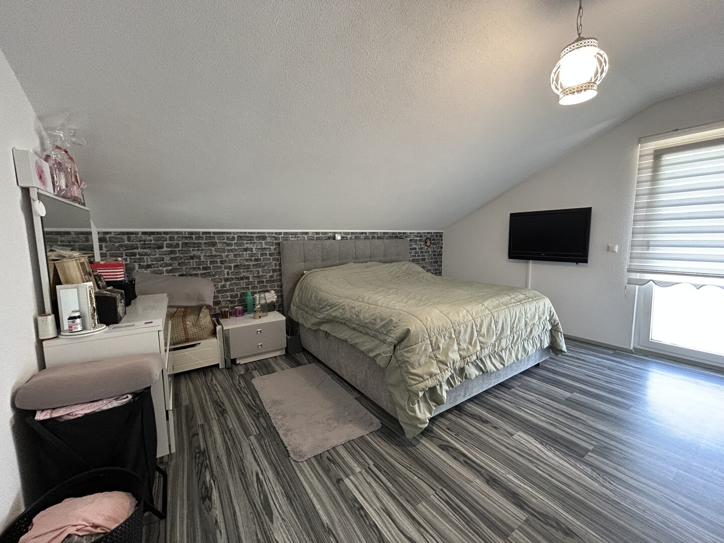 Ein besonderes Highlight ist die große, sonnige Terrasse auf der Doppelgarage, die zusätzlichen Freiraum für entspannte Stunden im Freien oder gesellige Abende mit Freunden bietet. Von hier aus genießen Sie einen herrlichen Blick ins Grüne – eine Oase der Ruhe mitten im Alltag.