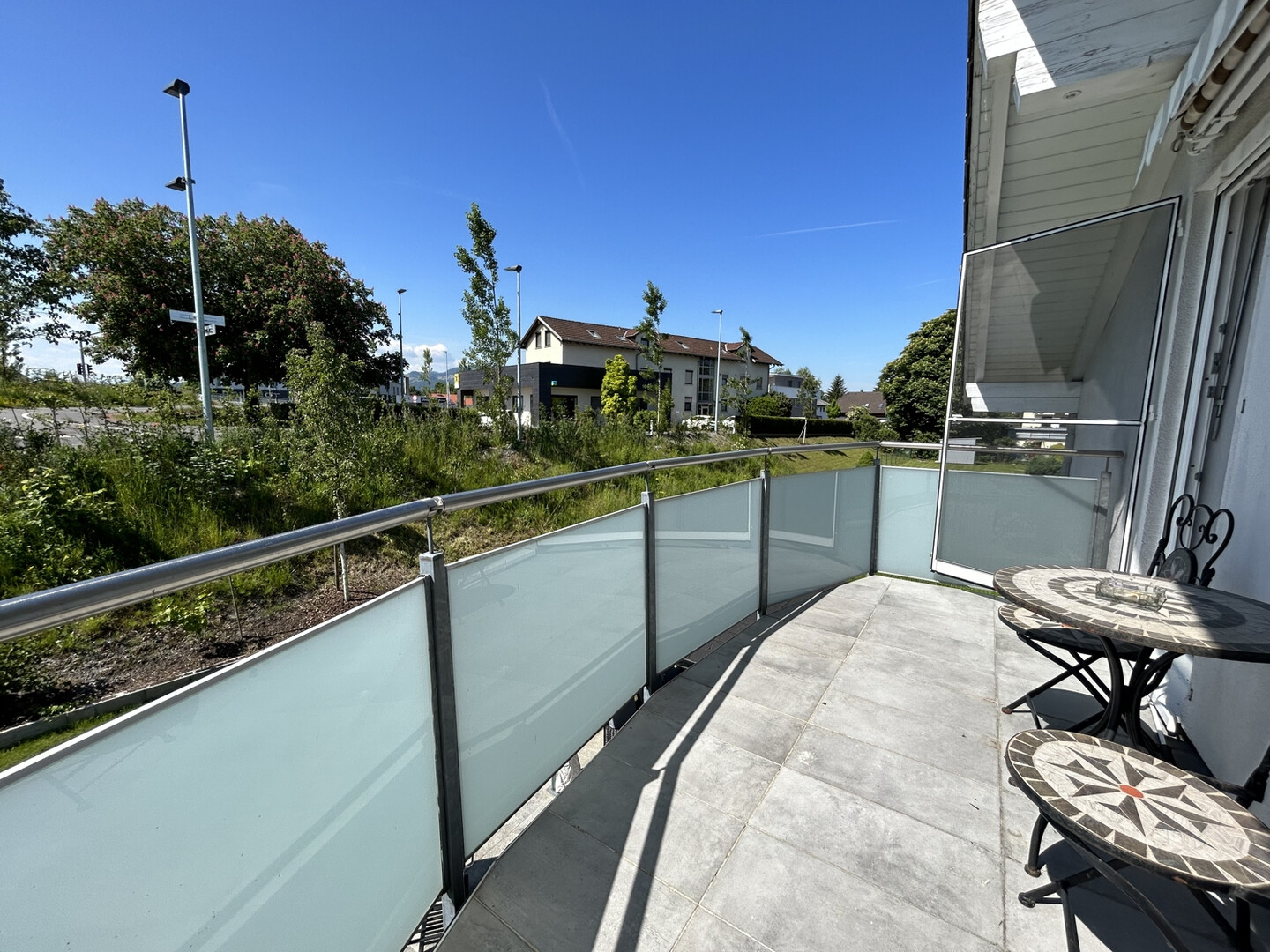 Gemütlicher Balkon im Obergeschoss mit schönem Ausblick