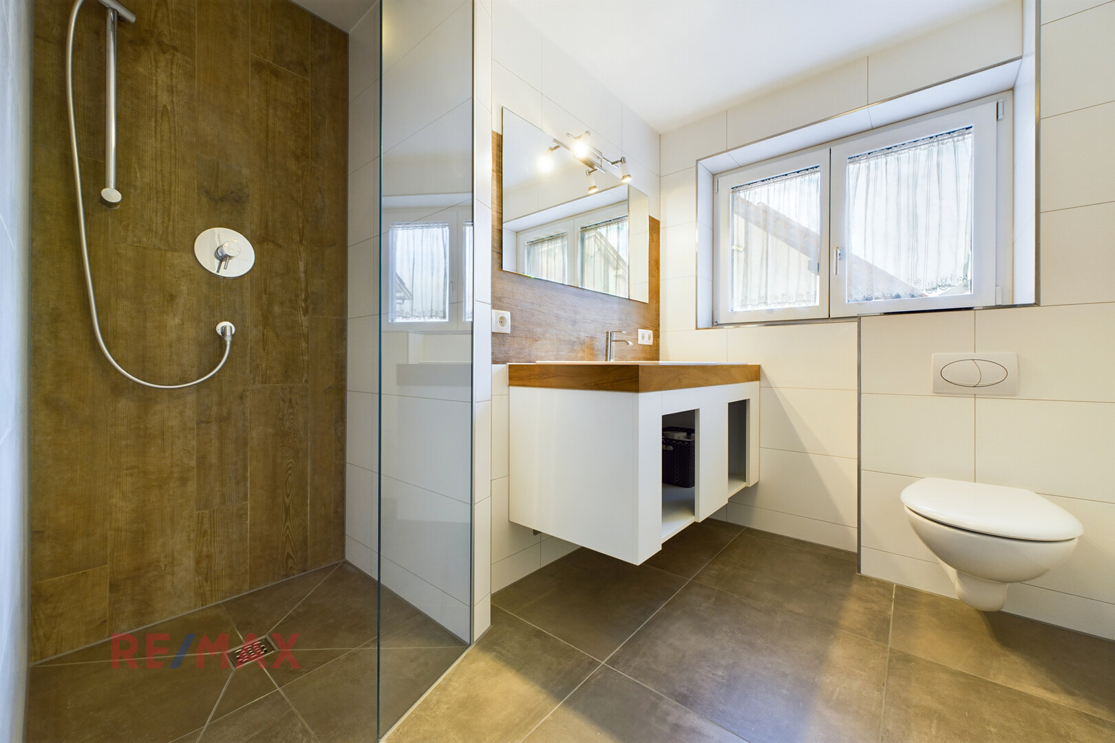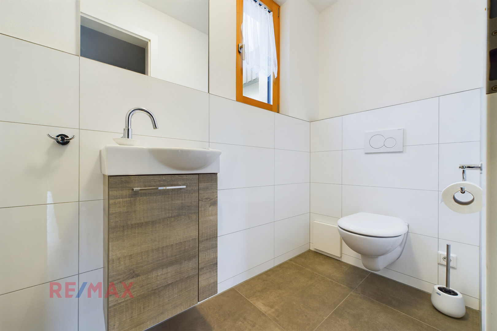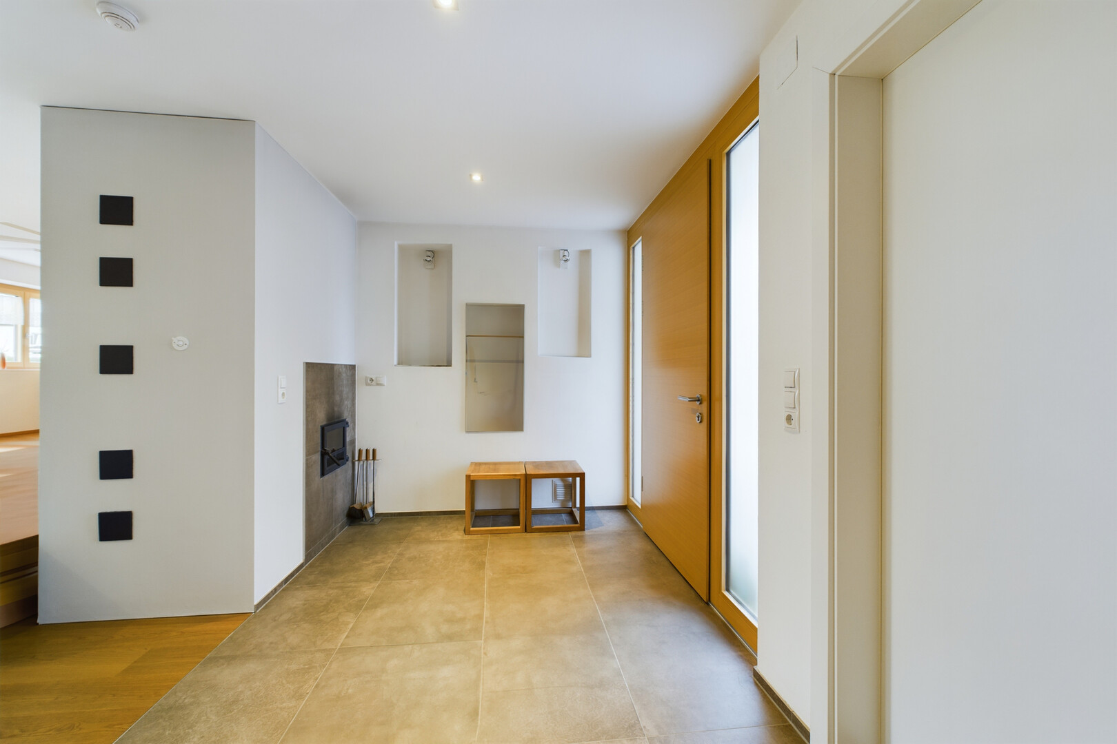 Ein zusätzlicher Charme des Hauses ist der gemütliche Kachelofen im Eingangsbereich, der beim Betreten sofort eine angenehme Wärme ausstrahlt und für eine einladende Atmosphäre sorgt. Die hellen, lichtdurchfluteten Räume schaffen ebenfalls eine angenehme, offene Wohnatmosphäre. Das moderne Badezimmer bietet zudem einen komfortablen und funktionalen Rückzugsort.