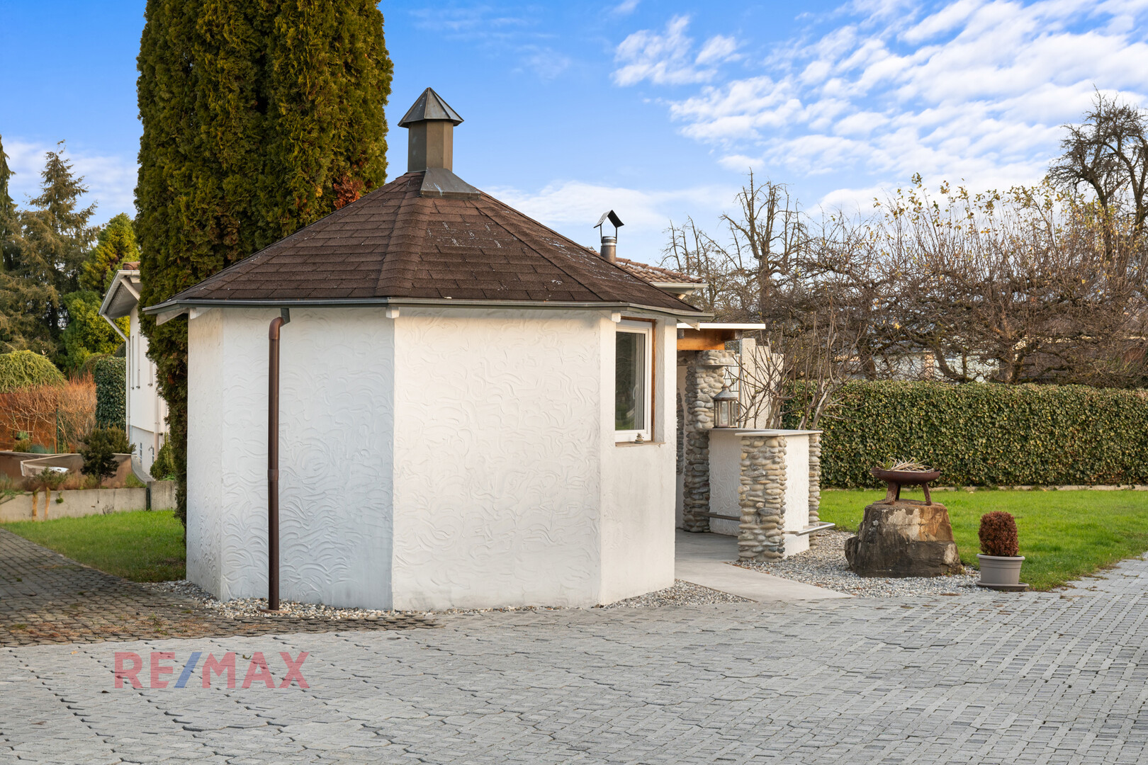 Ein großer Garten mit einem gemütlichen Gartenhäuschen, das über einen eigenen Kachelofen verfügt, bietet zusätzlichen Raum zum Entspannen und Wohlfühlen. Dank der zwei separaten Eingangstüren lässt sich das Haus flexibel als Einfamilienhaus oder als zwei unabhängige Wohnungen nutzen – perfekt für Mehrgenerationen-Wohnen oder als Investitionsobjekt. Ein wahres Juwel, das alle Bedürfnisse erfüllt!