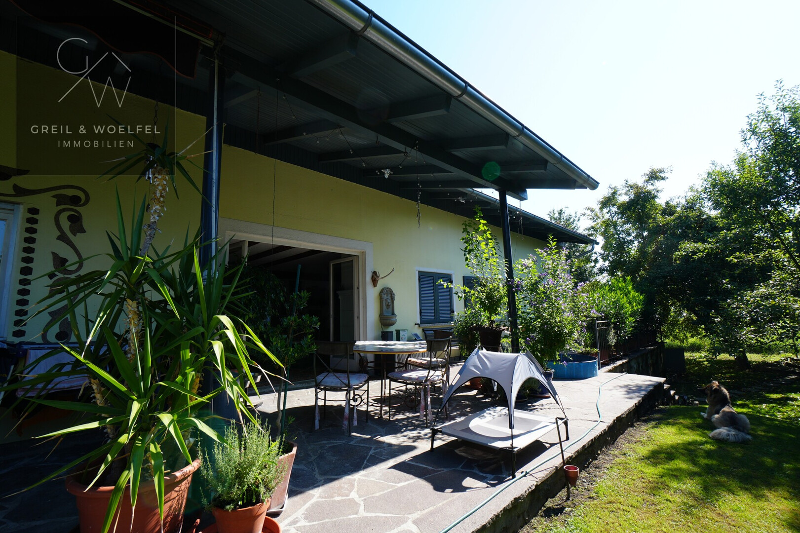 Der Außenbereich des Anwesens lädt zu geselligen Stunden im Freien ein und bietet ausreichend Platz für Gestaltungsfreiheit und persönliche Projekte. Ob Sie einen grünen Daumen haben oder einfach nur die Ruhe in Ihrem eigenen Garten genießen möchten, hier stehen Ihnen alle Möglichkeiten offen.